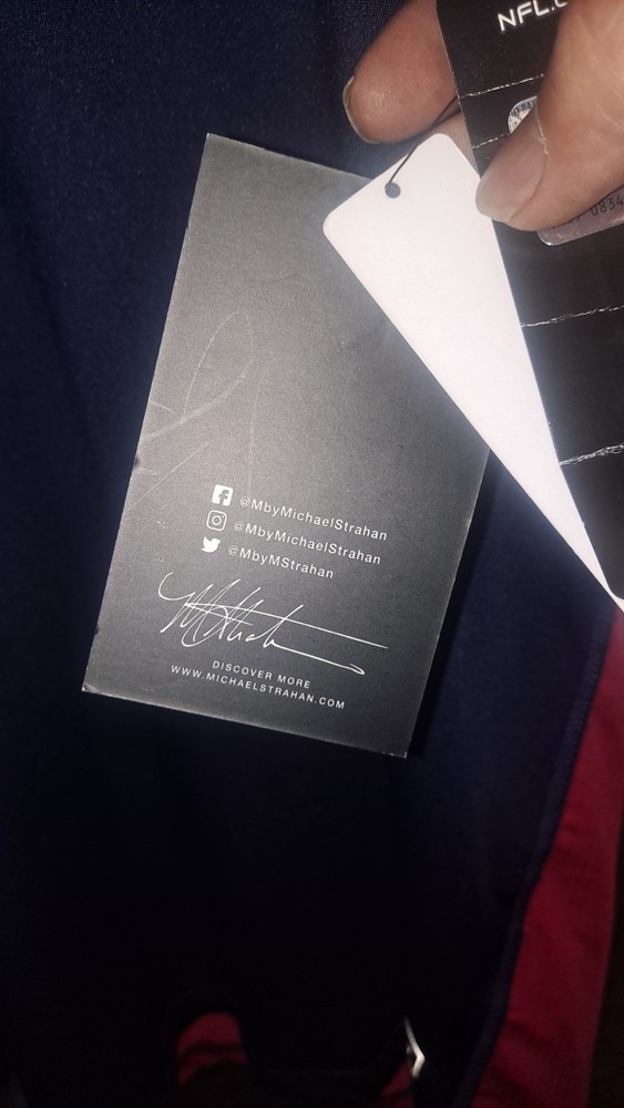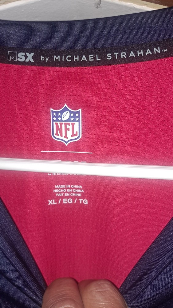 This NFL Team Apparel New England Patriots Football Navy T-Shirt in size XL is a must-have for any male football fan. Officially licensed by the National Football League, this graphic tee features the iconic team logo and colors. Made by NFL Michael Strahan, this shirt is perfect for showing support during the regular season games. Made in China, this high-quality shirt is sure to be a great addition to any sports memorabilia collection.