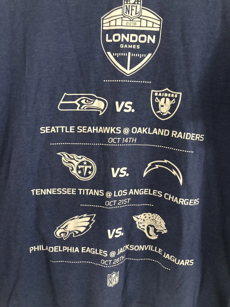 NFL T-shirt London Games 2018 Seahawks Raiders Eagles Chargers Size 2xl 3xl. Welcome to Kirktoys All items are sold as seen in pictures due to not knowing if all items are complete or have missing parts Majority of our items are second hand used items unless stated otherwise My pictures are my description so please look through and zoom in on all photographs before purchase I will always try my best to resolve any issues if a buyer is unhappy so please send me a message so we can resolve any issues Items purchased outside the uk are handled by global shipping No items include any batteries due to postal rules. I post out 3 times a week all item need to be paid before 3pm We sell a variety of items from toys clothing trainers computer games consoles household items electricals and more Please visit my shop for more goodies Thanks again for viewing one of my items have a great day