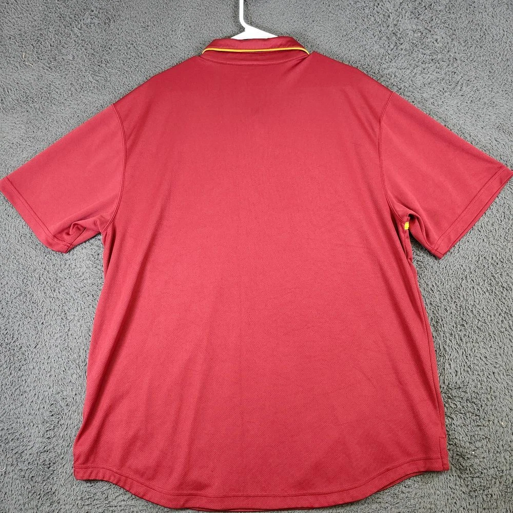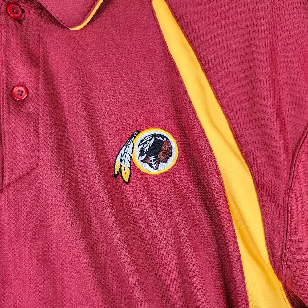 Show your team spirit with this authentic NFL performance polo. Perfect for game days, casual Fridays, or any sports-related occasion. Features moisture-wicking fabric with team colors and embroidered logo. Ideal for tailgating, watching the game, or representing your team at casual events. Professional styling meets fan dedication in this comfortable, athletic-inspired piece. Color: Red Department: Men Type: Polo Performance/Activity: Football Sleeve Length: Short Sleeve Pattern: Solid Fit: Athletic Material: 100% Polyester Features: Moisture Wicking, Breathable, Lightweight, Contrasting Trim Neckline: Collared Keywords: NFL polo, Washington Redskins, football gear, team apparel, performance polo, athletic wear, sports clothing, fan merchandise, game day outfit, moisture wicking, team logo