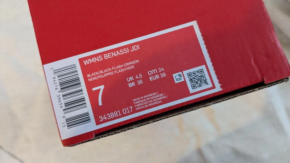 NIB Nike Benassi JDI 343881 018 Blac Flash Crimson Slides Sandals Shoes Women 7. Condition is New with box. Shipped with USPS Ground Advantage.