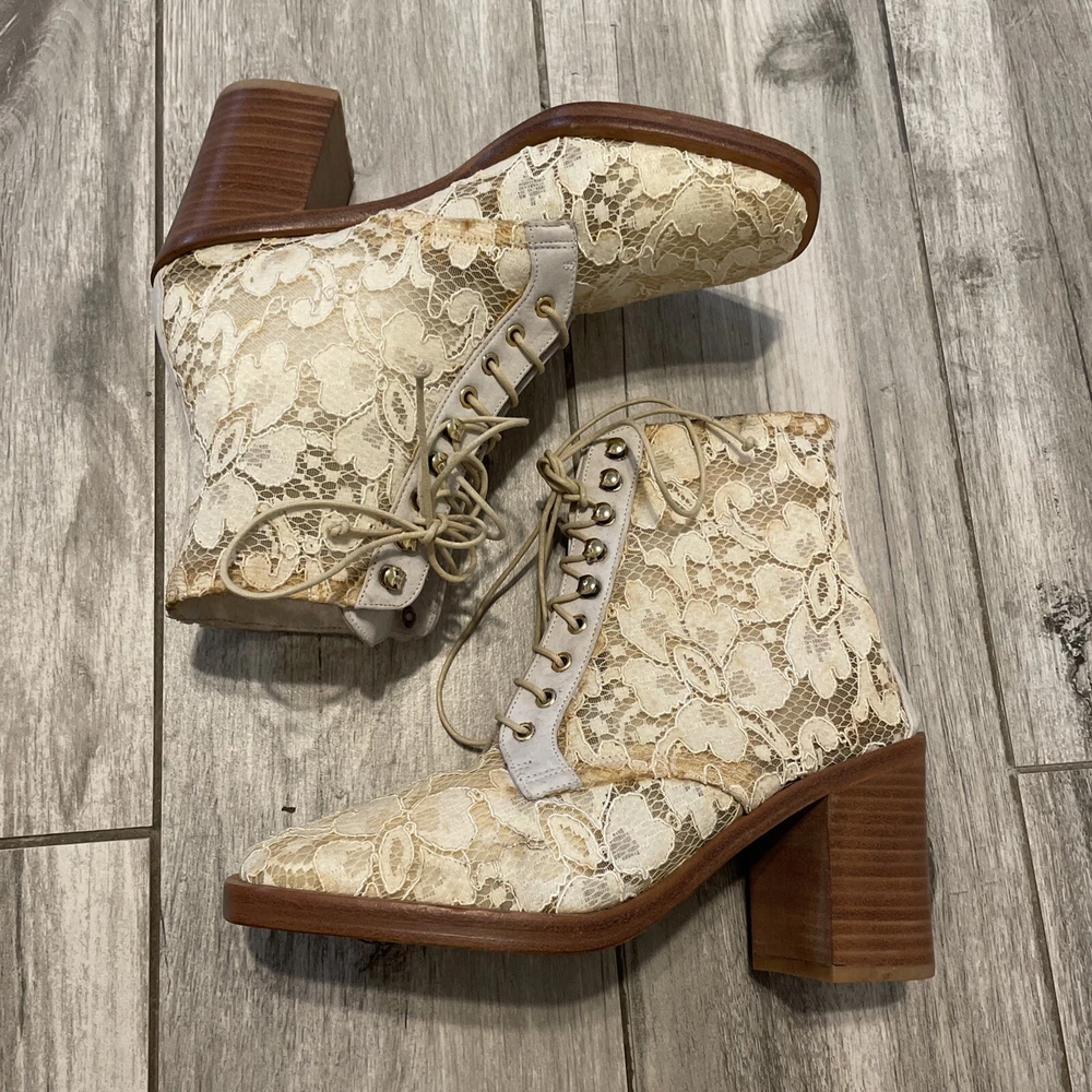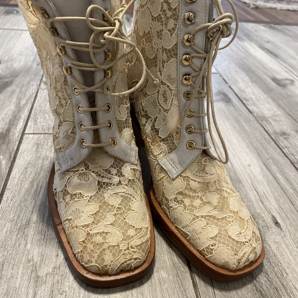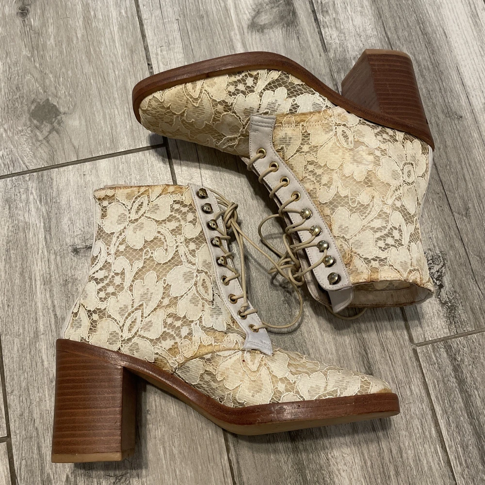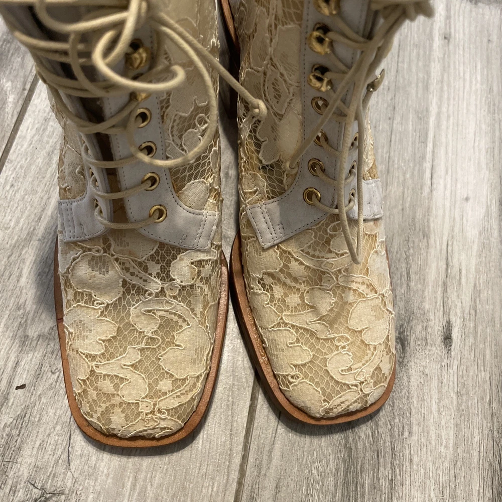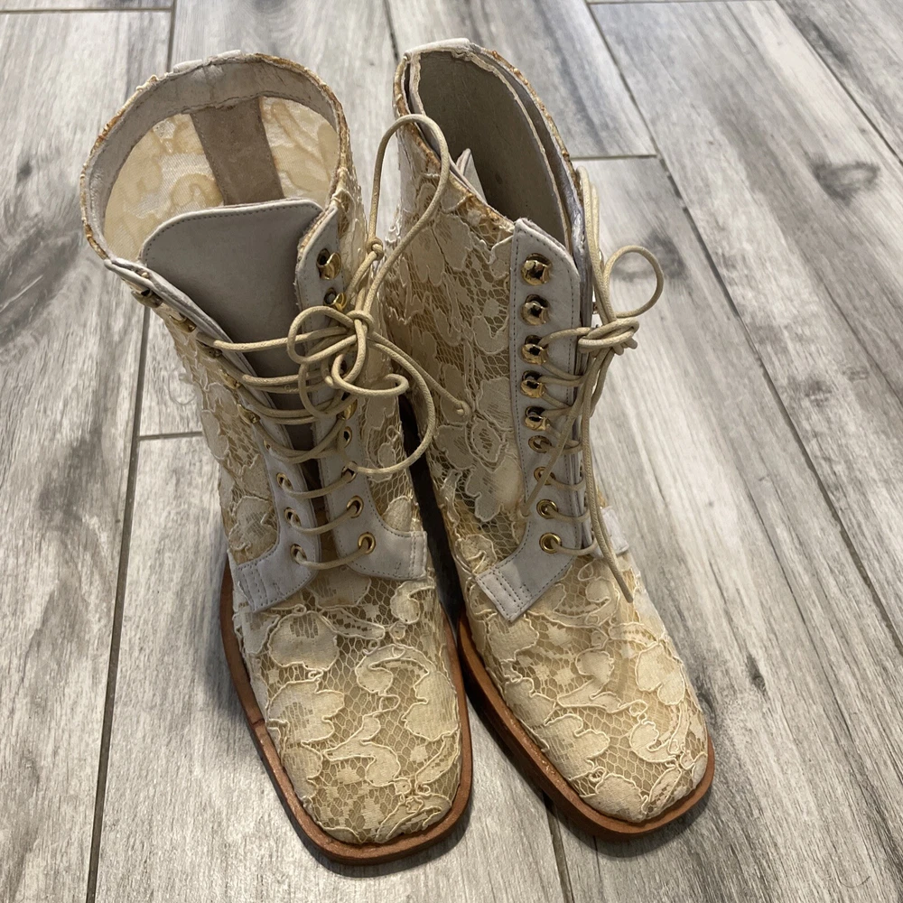 NOS VTG Lace Wedding Shoes Boots Cosplay Cream Lace Up Spain Womens Sz 5B New. Shipped with USPS Ground Advantage.