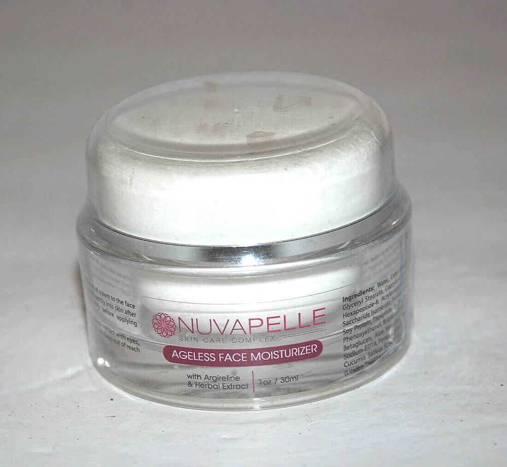 NUVAPELLE Skin Care Complex Ageless Anti Wrinkle Face Moisturizer Cream 1oz 30ML. Brand new jar. Unopened. No box. Special note: The spots on top of the jar in the photos are from the lens. They will not be there when you receive your jar.