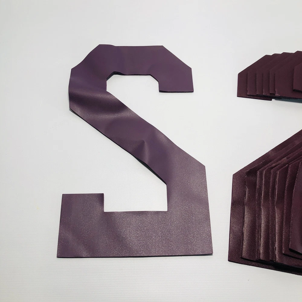 NWD x100 Custom Jersey Number Iron On Appliques Sports Burgundy #2 9"x 6" Vinyl Condition : This item is new with defects! This item shows some wrinkles due to prior storage that should iron out during application. Please see the images for details! Includes x100 #2 Burgundy Iron-On Numbers (x10 bundles of 10) Numbers measure approx. 9.75" Tall x 6" Wide 30 Day Returns