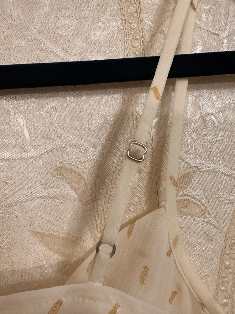 NWT Express Women's Ivory W/ Gold Accent Tank Top Spaghetti Straps Size XS. Condition is New with tags. Shipped with USPS Ground Advantage.