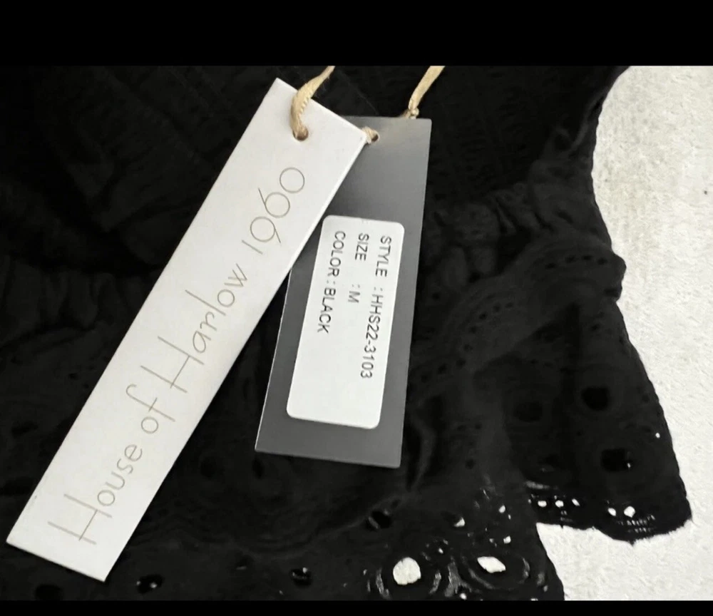 This House of Harlow tank top is a must-have addition to any wardrobe. The black cotton material is elastic fitted, providing a comfortable and flattering fit for all body types. The sleeveless design and pullover closure make it easy to wear for any occasion. The medium size is perfect for those looking for a regular fit, and the knit fabric type adds a unique touch to the overall look. This top is versatile and can be dressed up or down, making it a great addition to any outfit. Stretchy