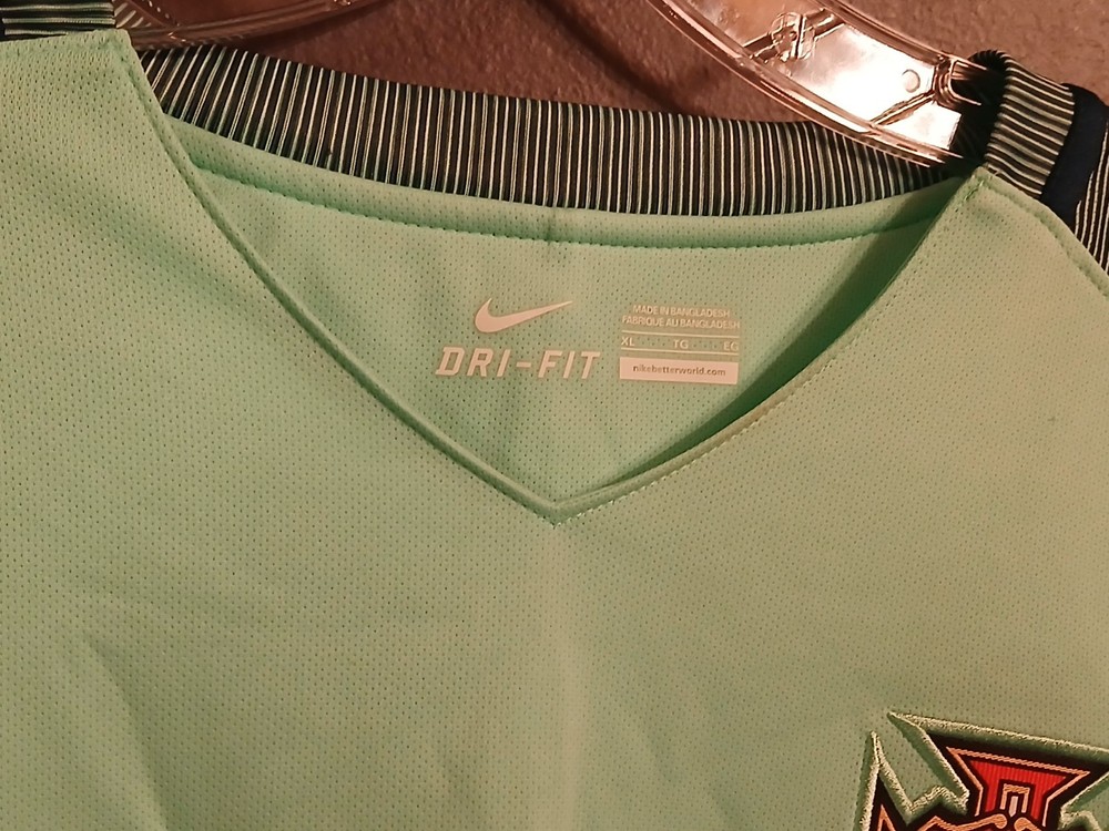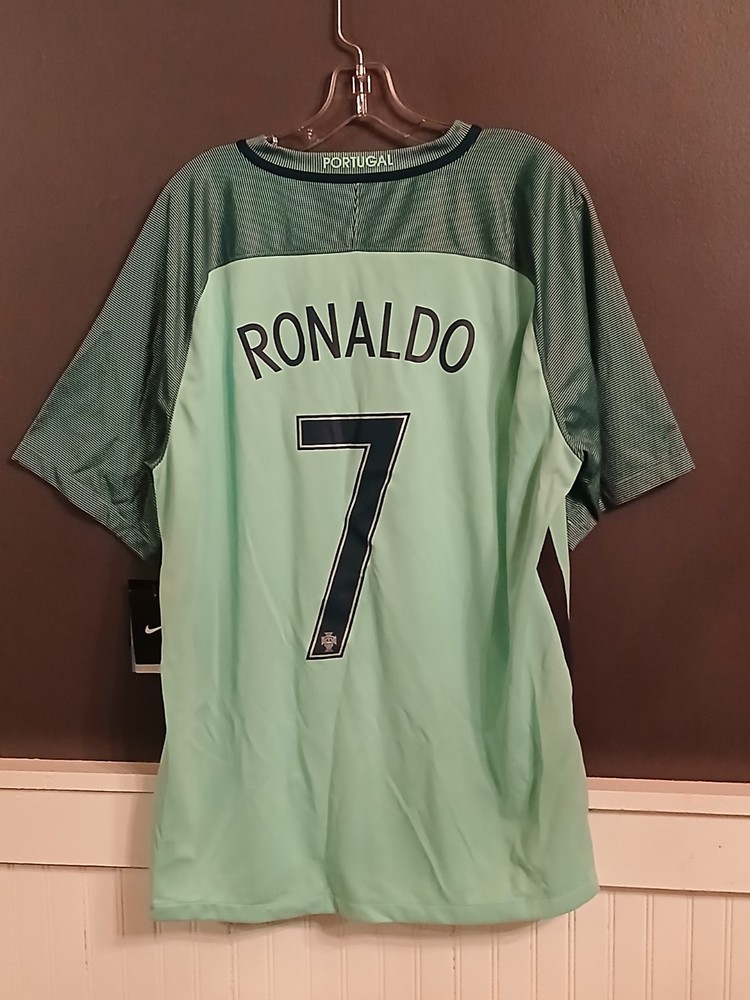 The product is a brand new Nike 2016 Portugal Cristiano Ronaldo jersey in size XL. It is officially licensed and features the iconic green color of the Portugal national team. Made for men and representing Cristiano Ronaldo, this jersey is a must-have for any soccer fan or collector. Made in Portugal, this authentic fan apparel is perfect for showing support for both the team and the legendary player.