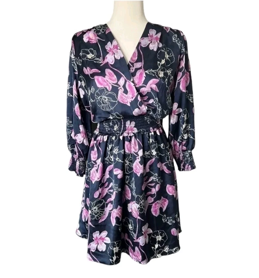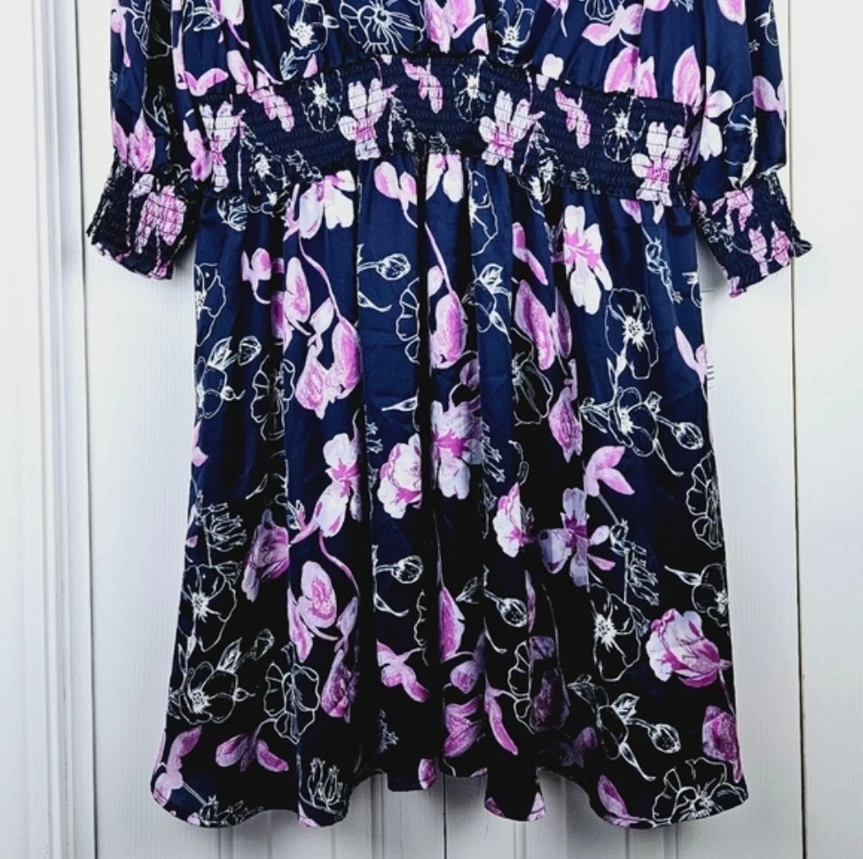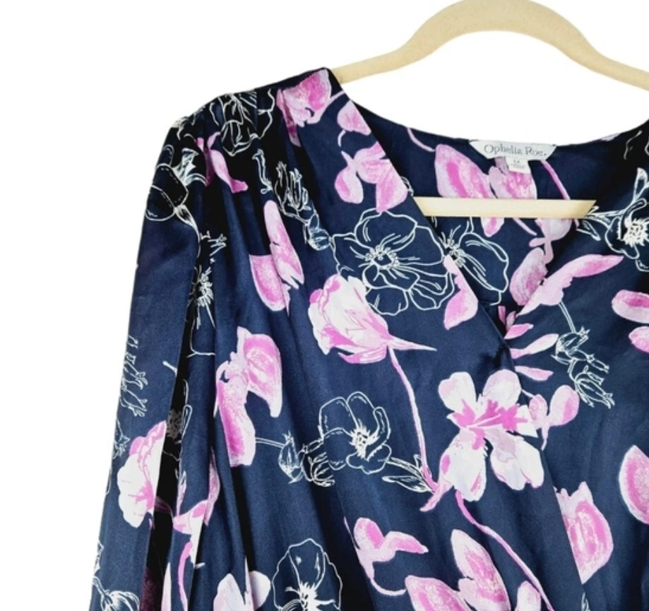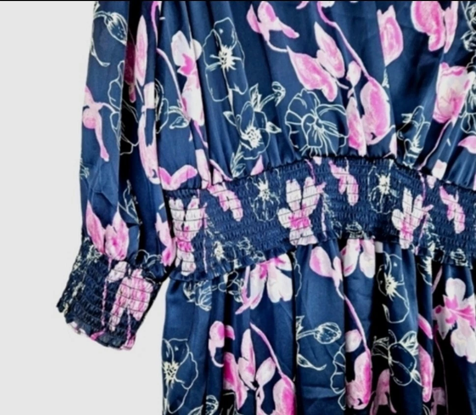 This beautiful navy blue and pink floral dress from Ophelia Roe is perfect for any occasion. The dress is designed for plus size women and is an A-line style with a knee length hem. It features long sleeves and a pullover closure, making it easy to wear. The dress is made of high-quality polyester material that is both comfortable and durable. The dress is perfect for anyone who loves flowers and wants to add a touch of elegance to their wardrobe. Whether you're going to a wedding, a party, or just out for a casual lunch with friends, this dress is sure to turn heads. Gathered at shoulders and sleeves. Silky feel with v-neck (hidden snap for more closed or open neck). New with tags 3/4 length smocked sleeves Stretchy smocked waist Lined 100% Polyester Plus size 1X _______________________________ * Questions are always welcomed; offers considered on most items * Smoke-free, pet friendly home * Items are shipped fast, next day. Bundle discount on shipping. * eBay return guarantee if item is not as described