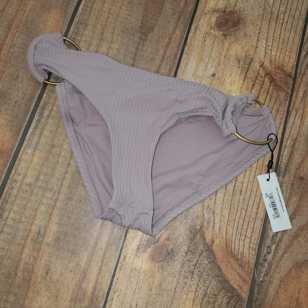 New with tags - bottoms only. Pretty taupe/lavender eco rib Size S A sexy, yet full-coverage luna ribbed bikini bottom with UPCYCLED gold ring detail on the sides that?s 3-dimensionally contoured to adapt to the shape of the hip for a comfortable, flattering fit. The Luna EcoRib is a superfine ribbed matte jersey with superior stretch I'm happy you found my listings - I list new items and ship items every day. Very happy to combine shipping. If you have any questions, please ask. Please do not make assumptions about color. Monitors display color differently. Be sure to read the entire description including the color attributes selected and ask if you have questions before buying.