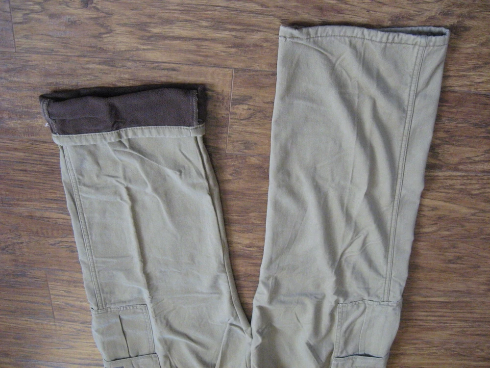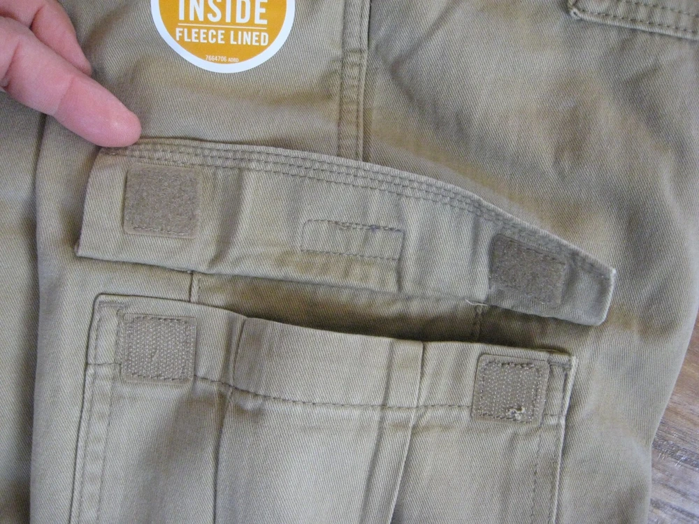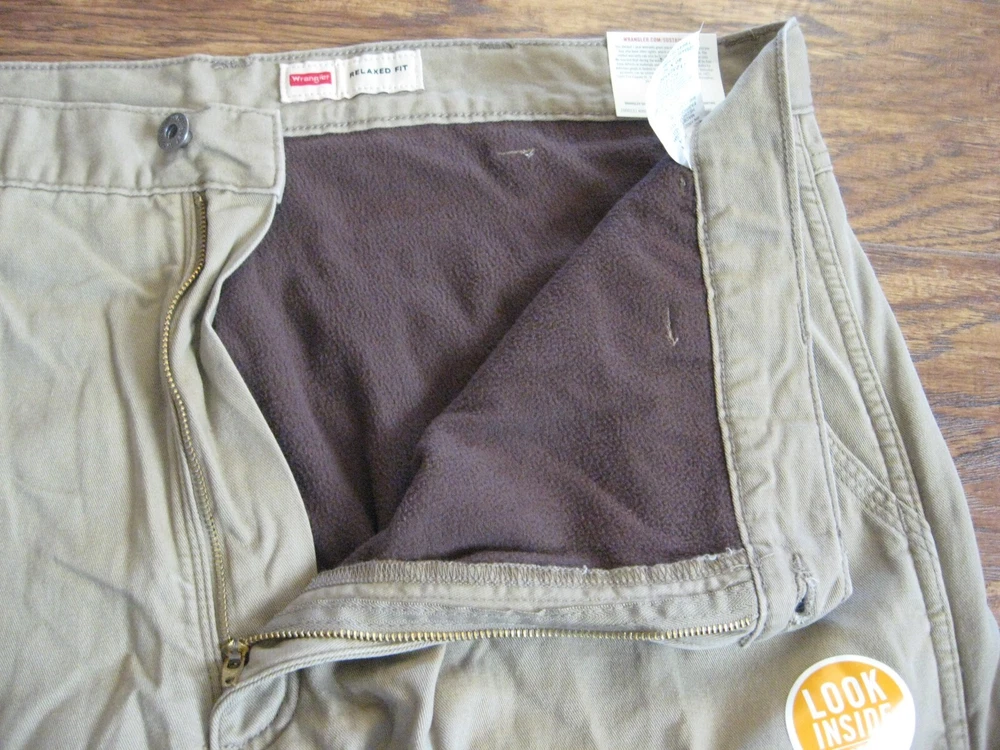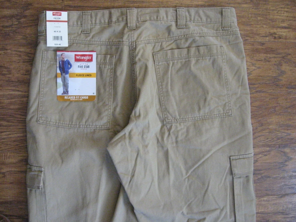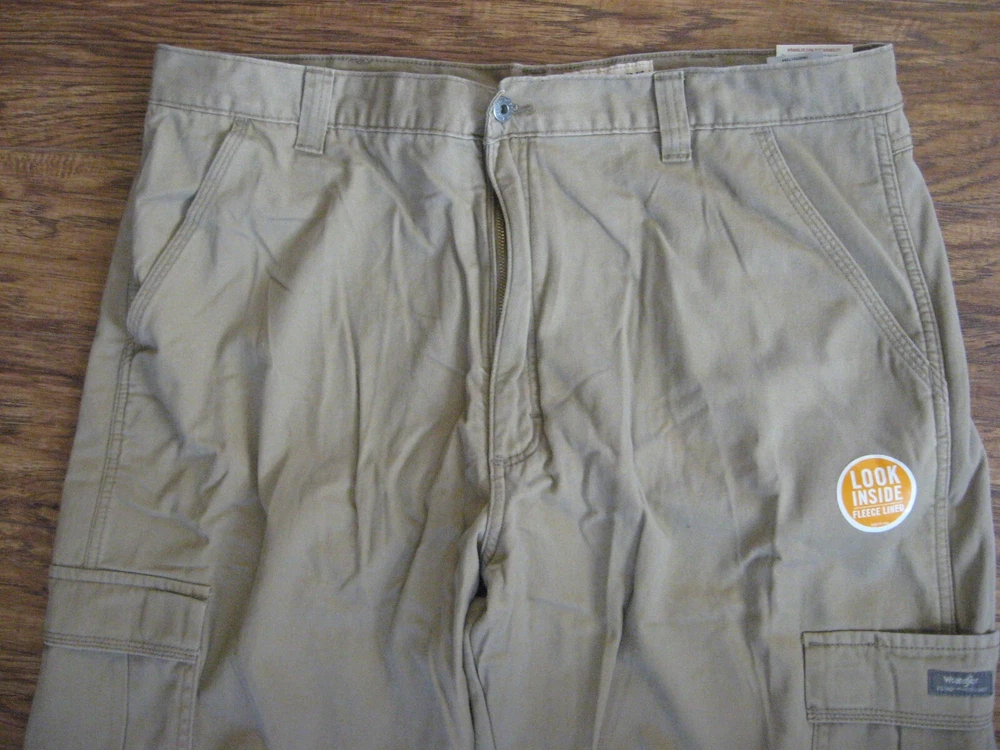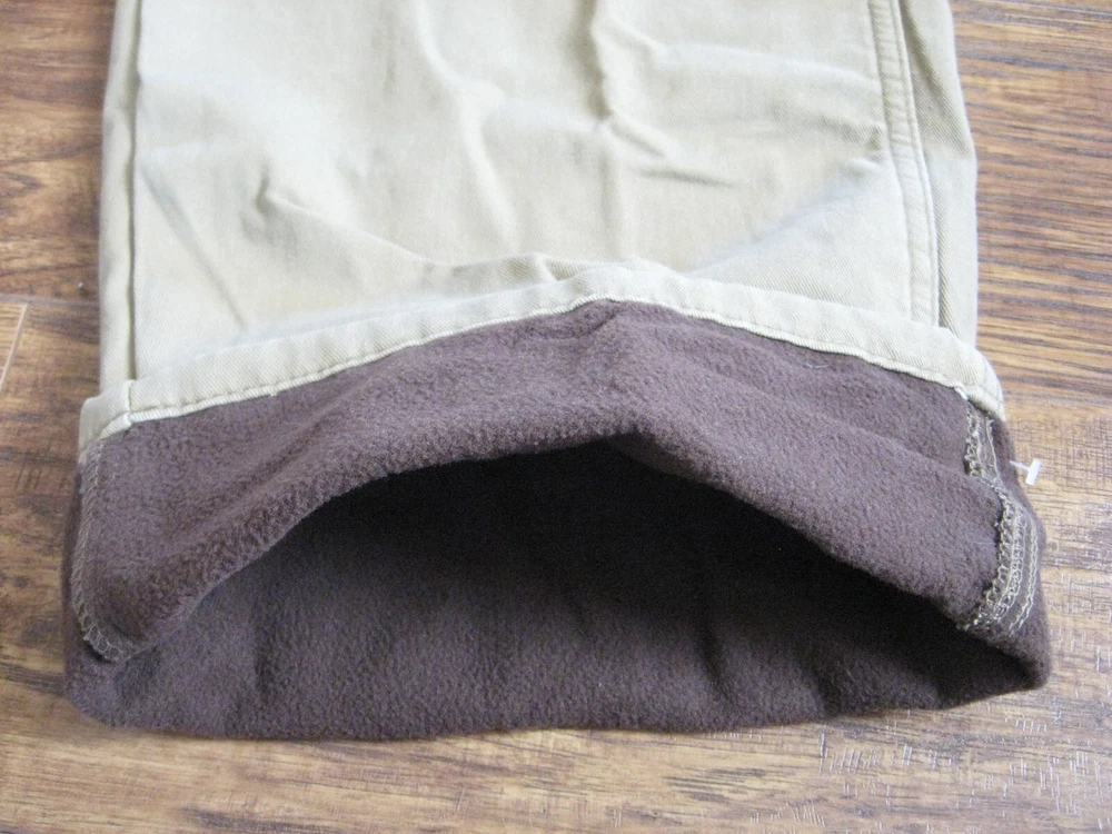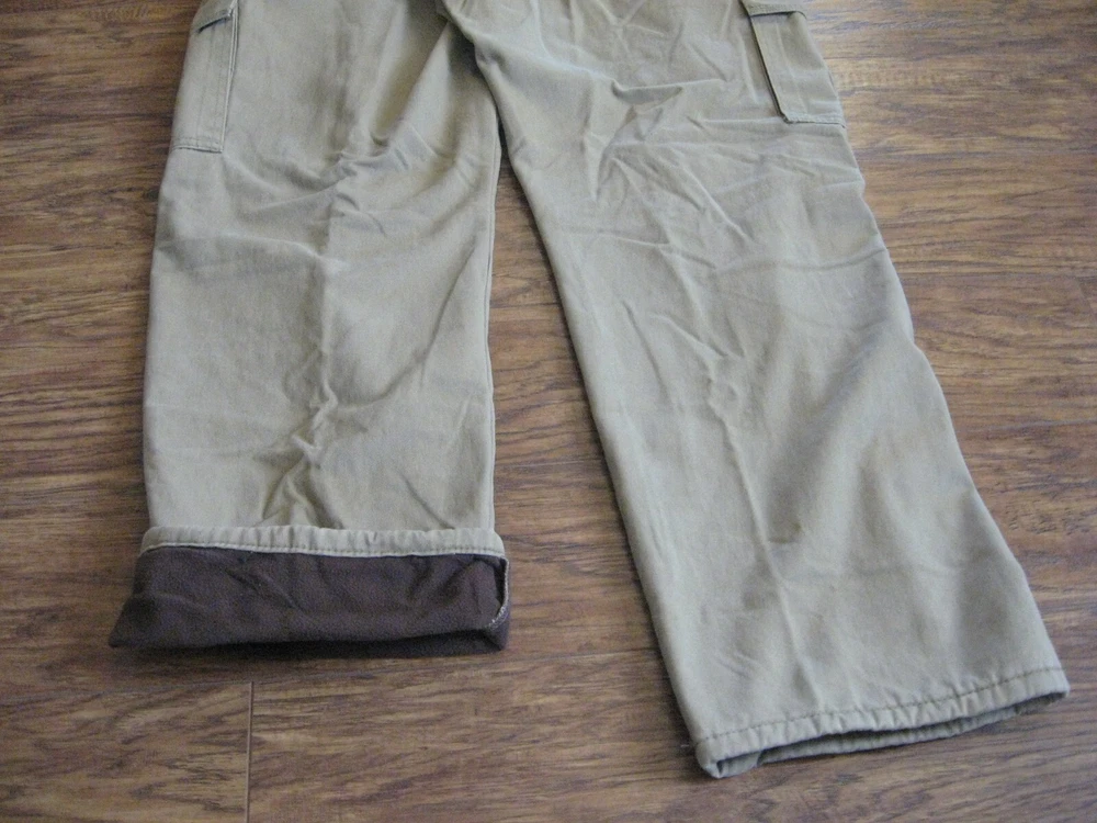 Brand new with tag. Never worn. One pant leg is still factory "pinned" back to show fleece. Tan color with plaid fleece. Tagged as 40 x 32. See actual measurements below. Measurements taken with garment laying flat: Waist: 42" Rise: 14" Inseam: 32-1/2" Check out all the pictures for details.