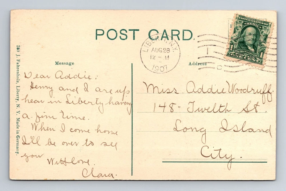 Subject: Cities & Towns Era: Vintage Unit of Sale: Single Unit Country/Region of Manufacture: Unknown Region: New York Material: Paper Country: USA City: New York Original/Licensed Reprint: Original Type: Printed (Lithograph) Postage Condition: Posted Size: Standard (5.5 x 3.5 in) Theme: Cities & Towns