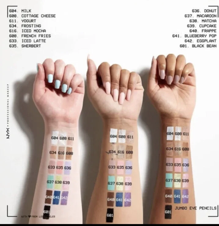 NYX PROFESSIONAL MAKEUP Jumbo Eye Pencil Eyeshadow & Eyeliner CHOOSE YOUR SHADE!!! BRAND NEW | WITHOUT BOX | NEVER USE | NOT SEALED {CHECK PICTURES FOR PRODUCT REFERENCE} ____________________________________ NYX Professional Makeup Jumbo Eye Pencil combines an eyeshadow and eyeliner all-in-one! This longwear liner features a creamy formula in many blendable shades. Benefits: –Sharpenable multi-use eye crayon can be used as an eyeliner, eyeshadow, eyeshadow primer or highlight –Features a creamy formula that glides on smoothly like silk and is easy to blend –Formula lasts all day & does not crease or dry out –Available in an astounding array of shades that work both day and night for any eye look –Apply it to your water lines, inner corners and entire eye lid –Made with a blend of mineral oil & powder, the creamy Jumbo Eye Pencils glide on effortlessly - no pulling, tugging or fading –Cruelty free HOW TO USE: Apply NYX Professional Makeup Jumbo Eye Pencil as an eyeliner, all over mono eyeshadow, or underneath shadow as a primer. Sharpenable tip!