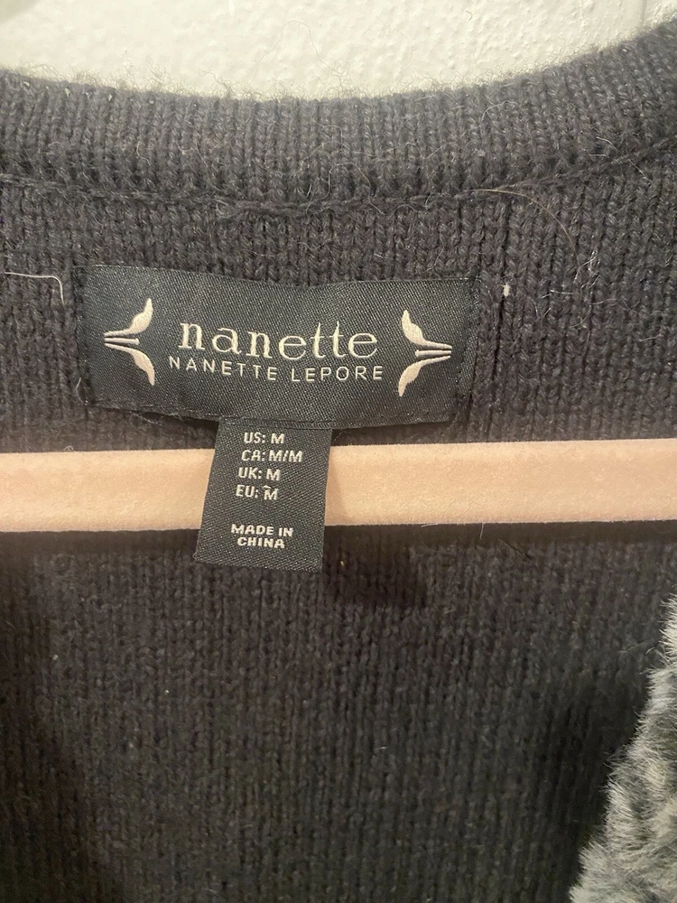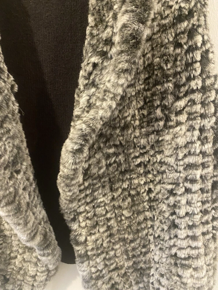 Nanette Lepore Vest Womens M Faux Fur Front Knit Back Hook Eye Closure Grays *left side piece of fur sticks out a little more, hard to tell