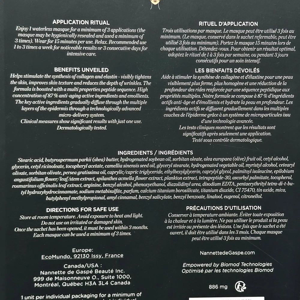 KleverKosmetics Our eBay Store About Us Contact Us Add to Favorite Sellers Nannette De GaspE Youth Revealed Restorative Techstile Masque *Imperfect Box* ** Nannette De GaspE Youth Revealed Restorative Techstile Masque is Brand New. The box is torn. You will receive what is pictured. ** A youth-restoring mask for the face with a unique blend of 87% age renewal active ingredients and emollients. This mask targets the appearance of fine lines and wrinkles while hydrating and brightening the skin. The intensive waterless techstile treatment includes a combination of powerful age renewal, brightening and hydrating actives that help stimulate the synthesis of collagen and elastin. Active ingredients are delivered through a biomimetic micro-vectorized ingredient delivery system known as BMV, which allows for the micro-penetration of active ingredients through multiple layers of the epidermis, thus helping to achieve more pronounced skin care results in a condensed amount of time. ** Nannette De GaspE Youth Revealed Restorative Techstile Masque is Brand New. The box is torn. You will receive what is pictured. ** You’ll look in the mirror and immediately begin to see a younger, brighter, more vibrant you with Youth Face Revealed, the best serum for face anti-aging. Defy years with this treatment that will take away stress lines, wrinkles, and age-worn weariness. How to use: With the non-printed side against your cleansed face, position the top portion of the masque by slipping your ears through the slits on each side. Repeat for the bottom portion. Activate the formula by lightly massaging the surface of the mask After use, allow the skin to absorb the formulation-there\'s no need to rinse. Refold the masque with the formula side facing inward and place it back into the hygienic pouch. Reseal the pouch using the zip. The highly-restorative and reparative techstile It\'s recommended for use 1-3 times a week for noticeable results, or three consecutive days for an intensive cure. Reusable 3 to 5 times. Return and Refund Information • Please be aware that colors on the screen may appear slightly different in person. • Please be familiar with product. Feel free to contact us if you have any questions. • DUE TO HEALTH AND SANITARY ISSUES CONCERNING COSMETICS OR SKINCARE WE DO NOT ACCEPT RETURNS ON THESE ITEMS. ALL SALES ARE FINAL. • WE WILL ONLY ACCEPT RETURNS WHEN THE ERROR IS ON OUR END. • Attention VeRO members: We're not affiliated with or endorsed by the companies mentioned in this listing. All trademarks and copyrights are acknowledged, they are only used for informative description of the items offered for sale. Warranty information We are not an authorized dealer of this product and any warranty included with the product may not be honored by the manufacturer.