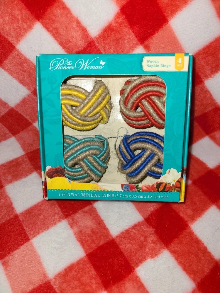 BRAND NEW IN BOX SET OF 4 WOVEN NAPKIN RINGS PRETTY SET