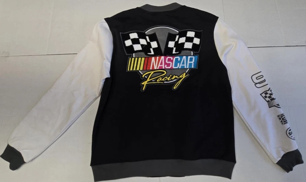 Embrace the thrill of auto racing with this sleek Nascar Men's Small Black Long Sleeve Jacket, a must-have for any NASCAR enthusiast. The jacket features an embroidered logo that showcases your love for the sport, while the black and white design adds a touch of classic style to your wardrobe. Officially licensed by NASCAR, this jacket is perfect for those chilly race days or casual outings. The comfortable small size and versatile black color make it an easy choice for any fan looking to represent their favorite sport in style. Keep the spirit of the racetrack close to your heart with this premium fan apparel.