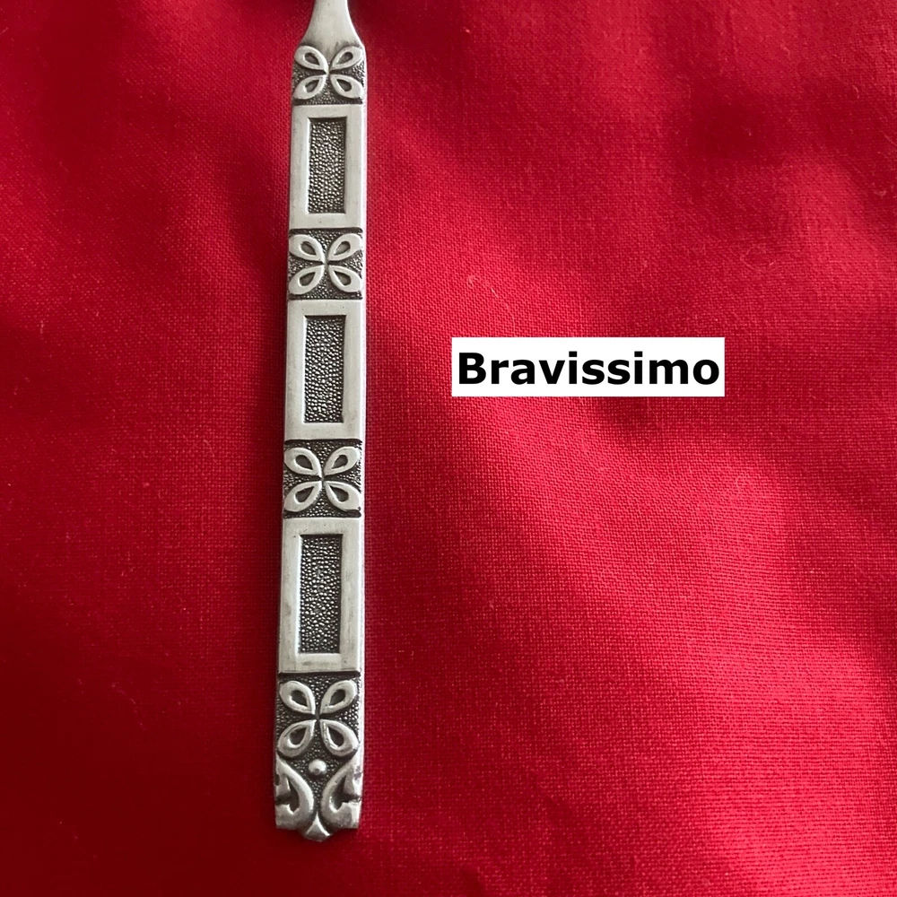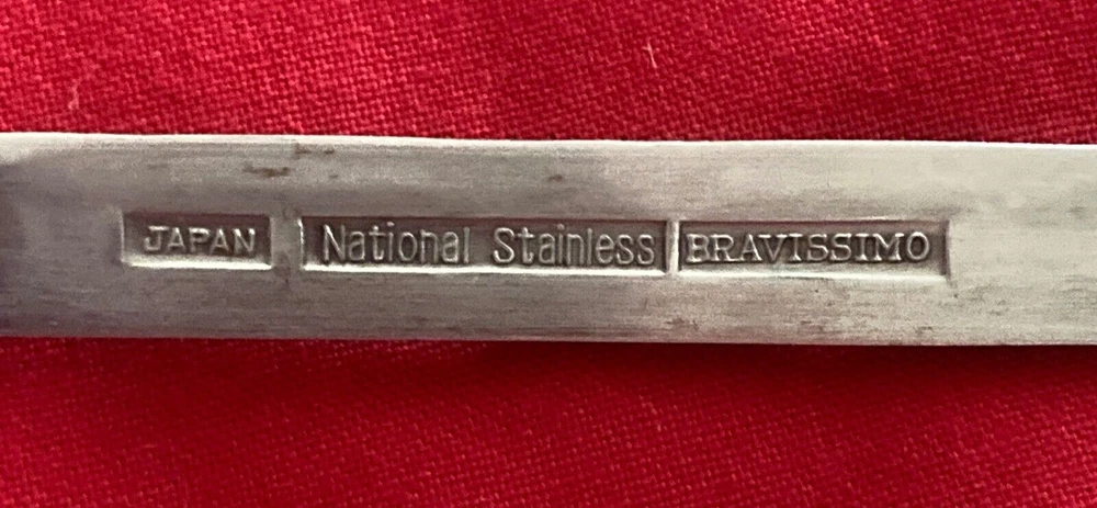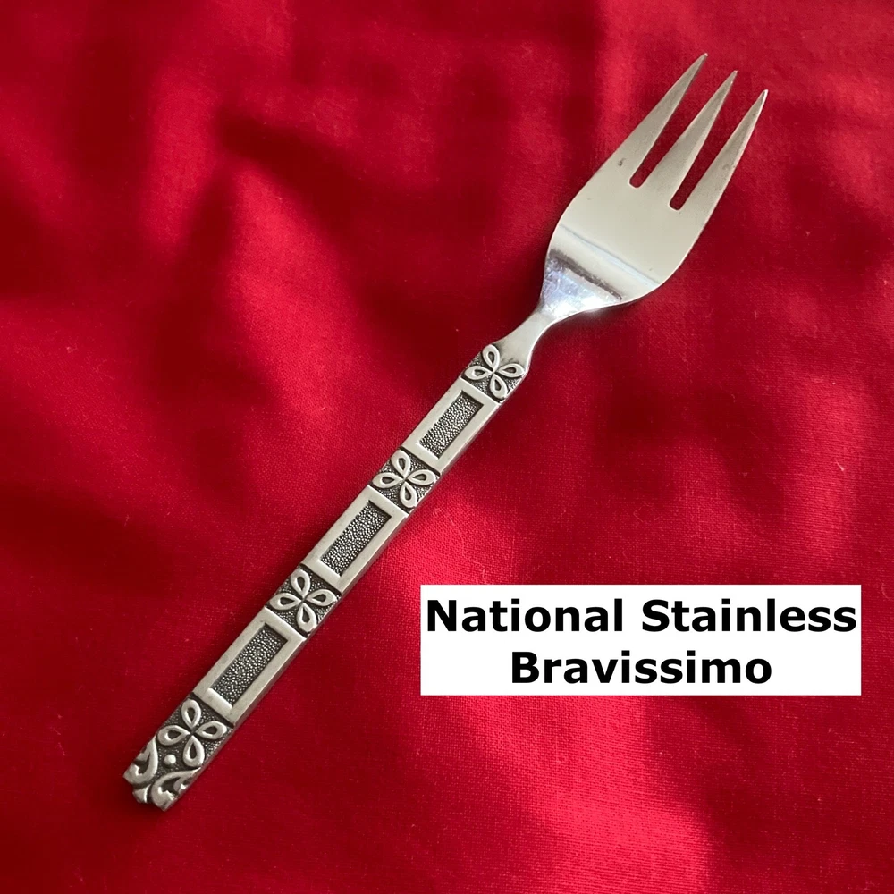 Manufacturer: National Stainless Pattern: Bravissimo Type: Stainless Steel Piece: Salad Fork Length: 6 5/8" Minor pitting/rest mark. See pic Structurally sound