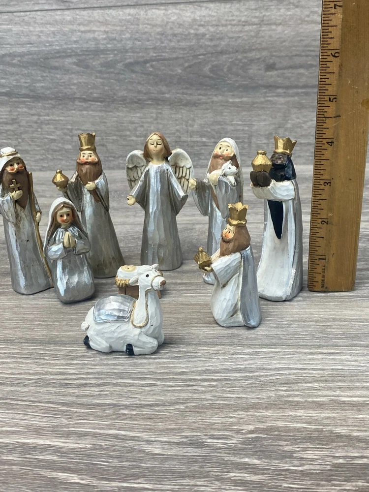 Nativity Set 9 Piece Baby Jesus 3 Kings Hand Painted Christmas Holiday Peace