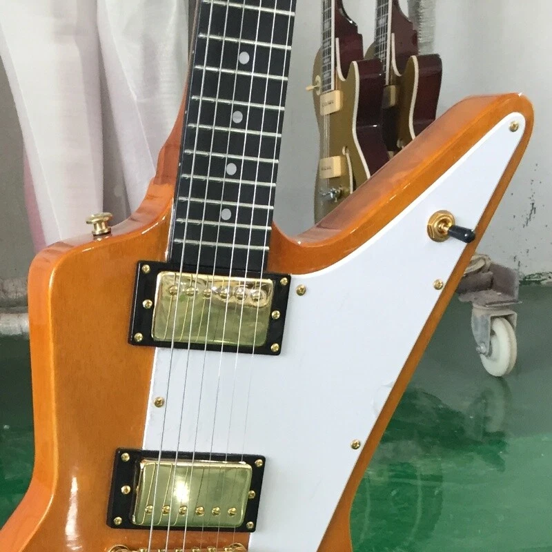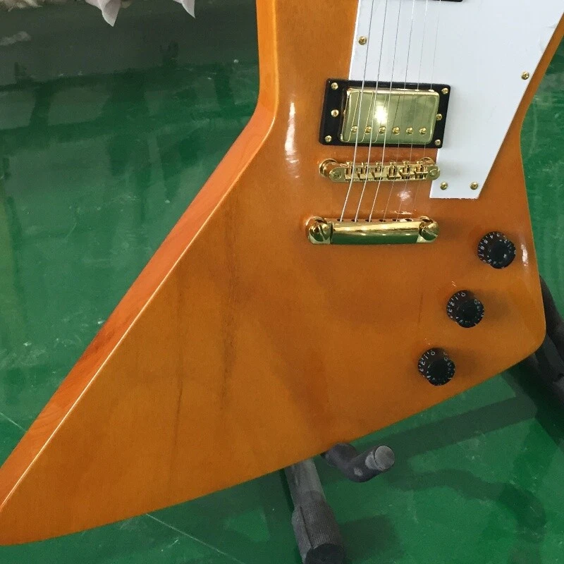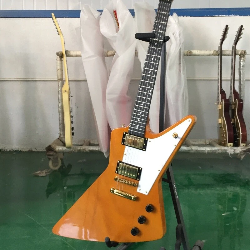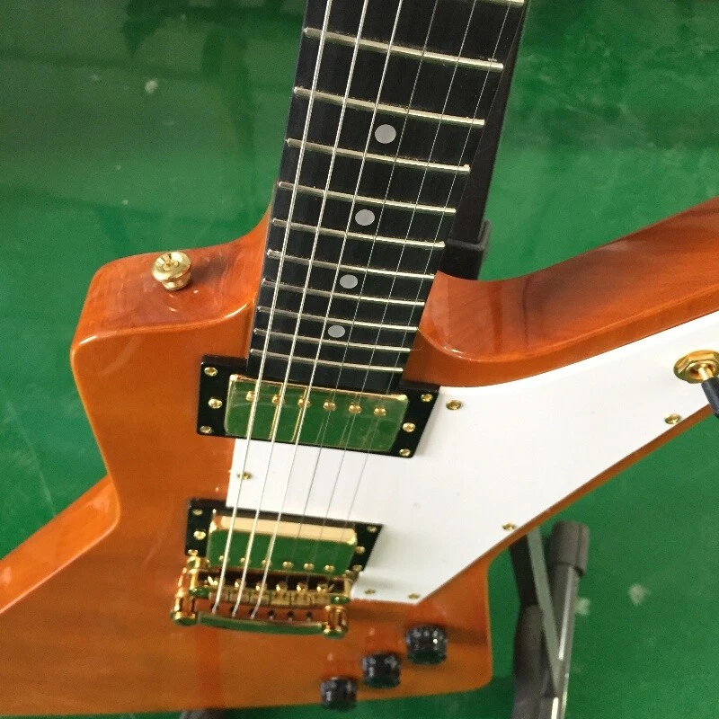Natural Explorer 70s Electric Guitar White Pick Guard Gold Hardware HH Pickups Body:mahogany Neck:mahogany Fingerboard:black Joint:Bolt on Pickups:2 humbuckers Electronic:1 Volume 2 Tone Bridge:T-O-M Nut width:43 mm ABOUT THE PICTURES The pictures are taken in our factories by ourselves. Every guitar cannot be the same in 100%, the pictures of the guitar that you see is just one of them. Head stocks are not pictured per our policy.If you want some details about the guitar, please contact me. OUR GUARANTEE We test every guitar is in good condition before it is shipped out. When you receive the guitar, if you meet some problems like readjustment the strings or you are not happy with our guitar, please contact me. PACKING We will place a foam box and foam filler to prevent damage to the guitar, but if the guitar is still broken in transit, please contact me. RETURN POLICY If the item you received is broken or defective, please contact me immediately and return it within 3 days after you received it with the original or approved packaging. After we received it, we will give you a Full-Refund or Exchange. Buyers are responsible for return shopping costs. If you want to replace it, we will send a new one to you and then forward a shipping label. For missing or replacement parts(from the original order), we will ship them to you. If you have any questions about a return or exchange,please contact me. FEEDBACK The new shop is not easy to operate, if you like our guitar, truly hope you can leave a good comment. If you are not satisfied, we will do our best to solve the problem. Thank you soooo much!