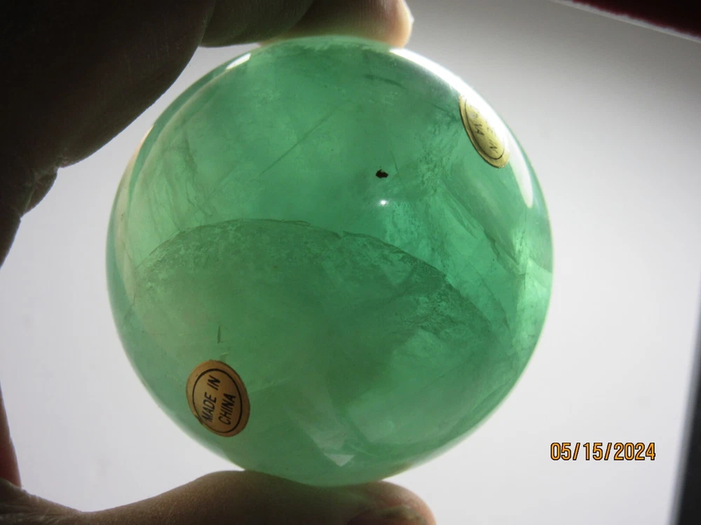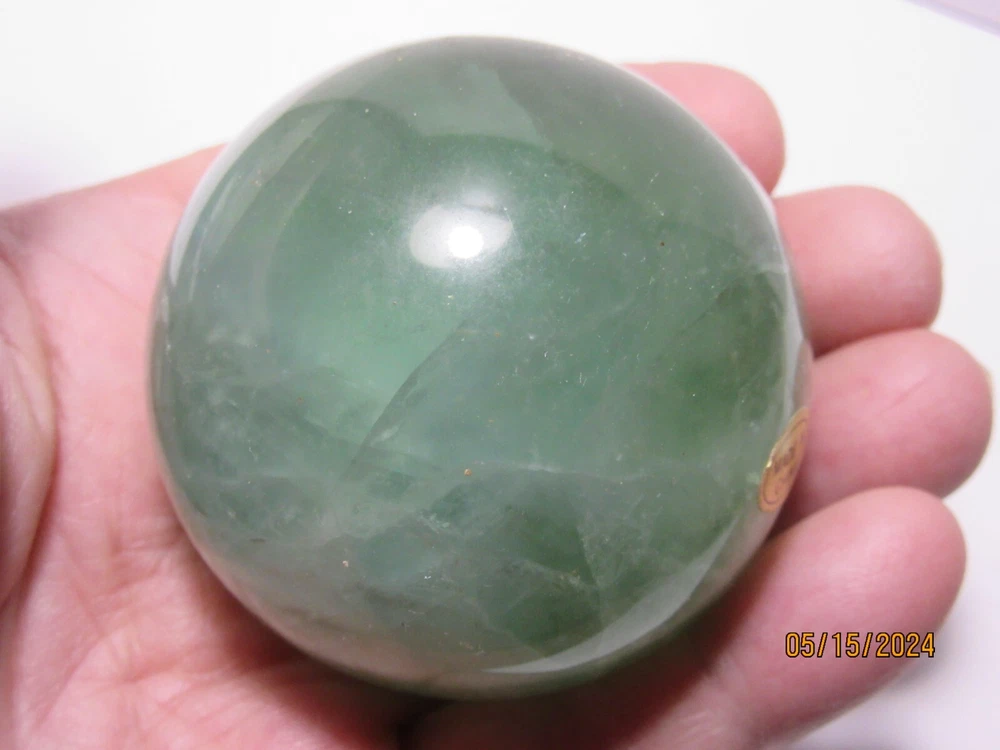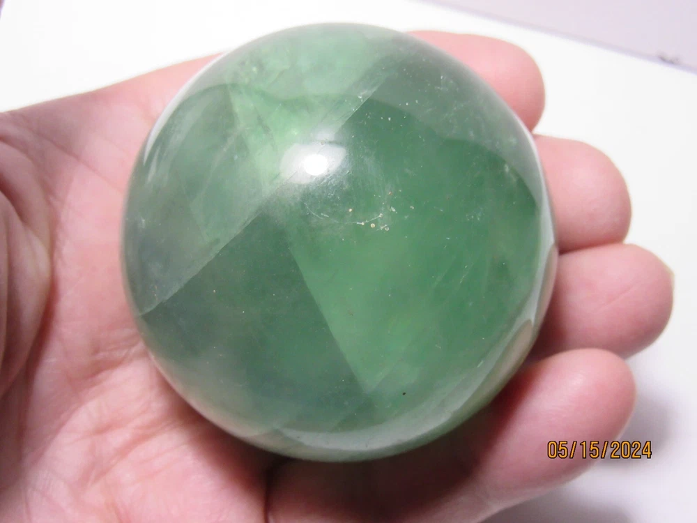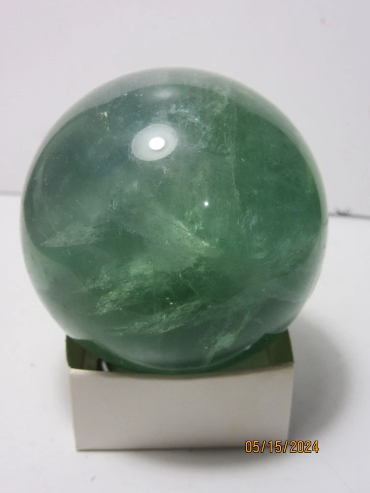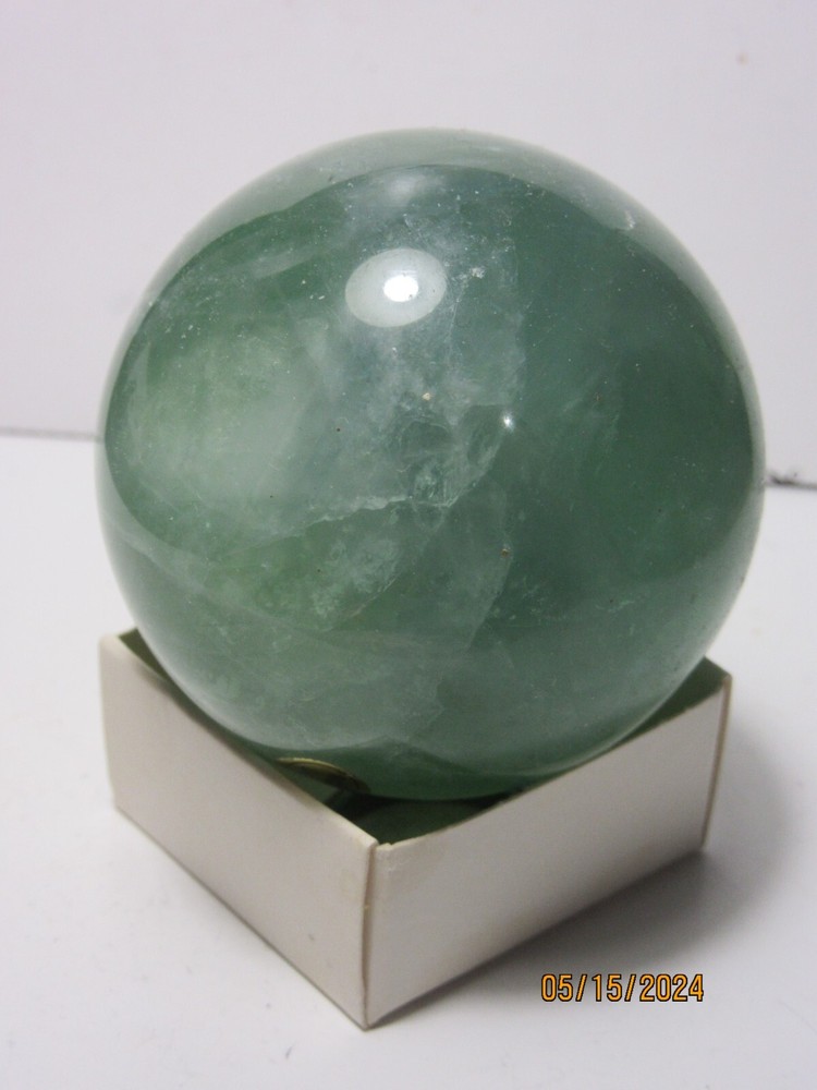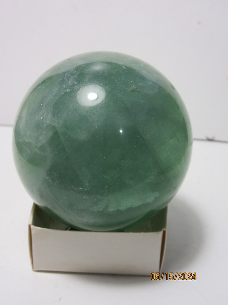 This AAA 2 1/4" Natural Fluorite Quartz 56mm Sphere Collectible is about 56.76mm or 2.234 diameter inches and weighs about 305.7 grams, 10.783 ounces, or 1,528 carats. I acquired this fluorite sphere for my collection over 30 years ago. It is still like new being on display. I do combined shipping.