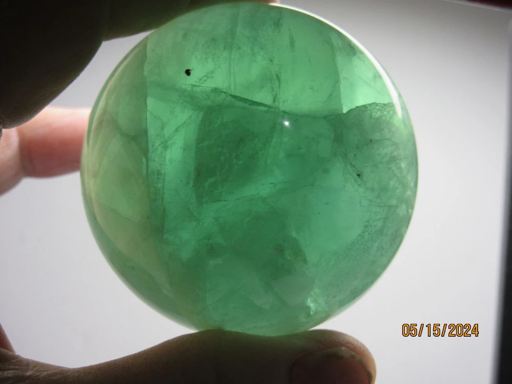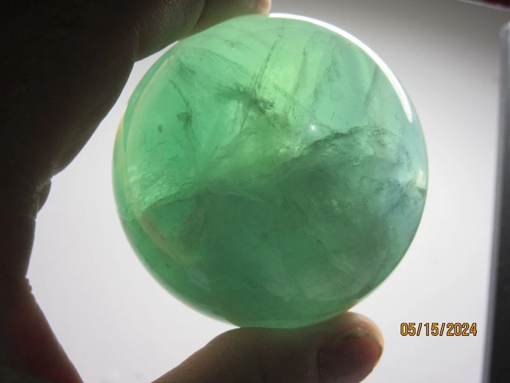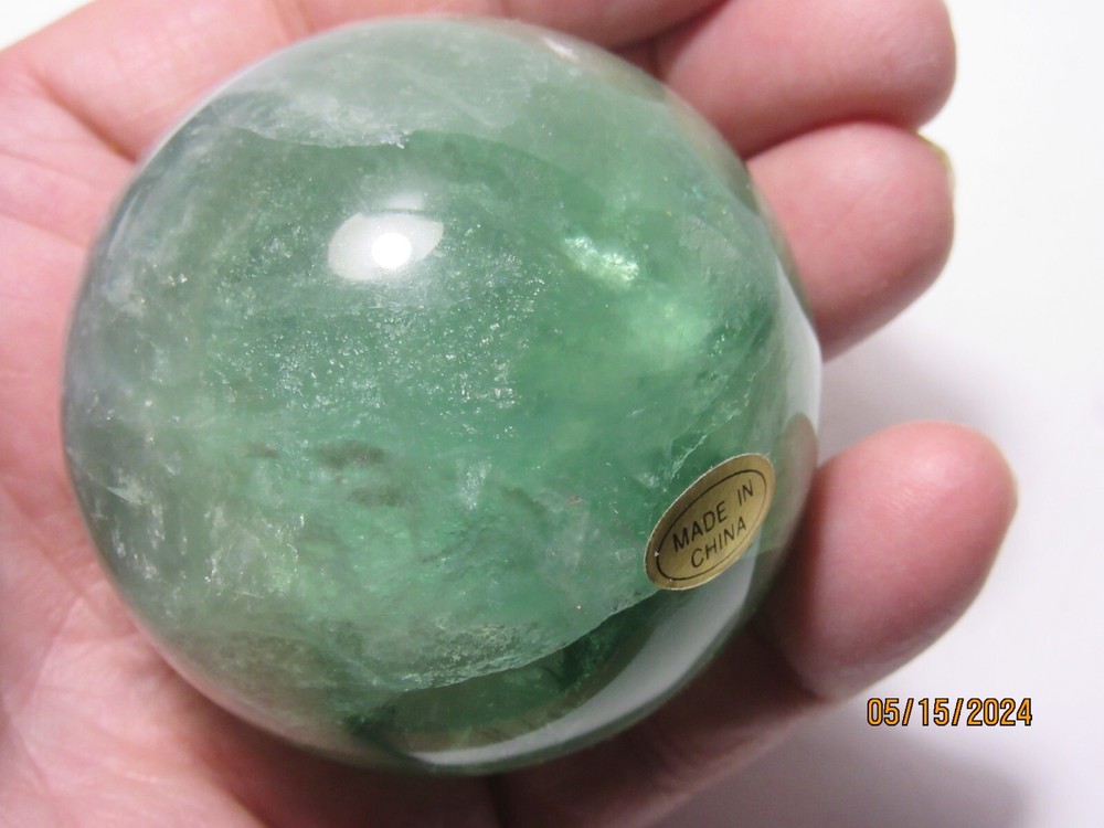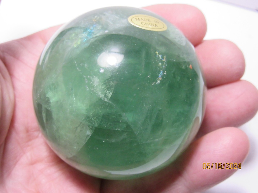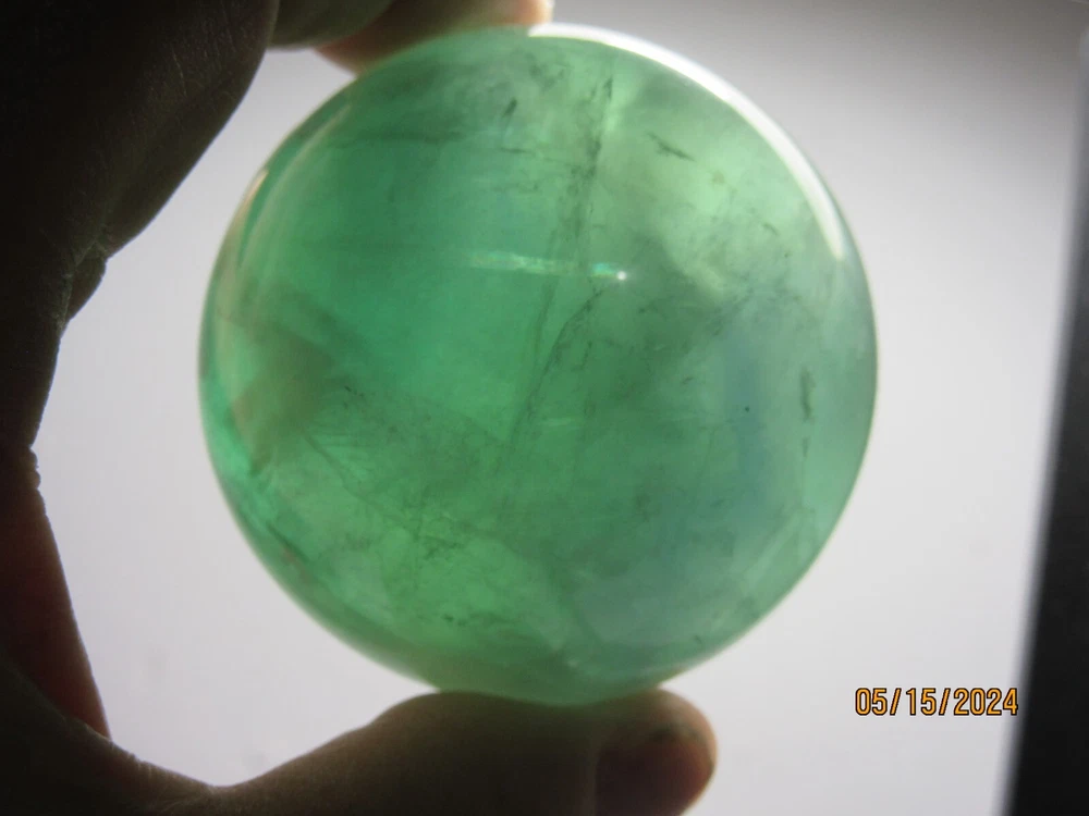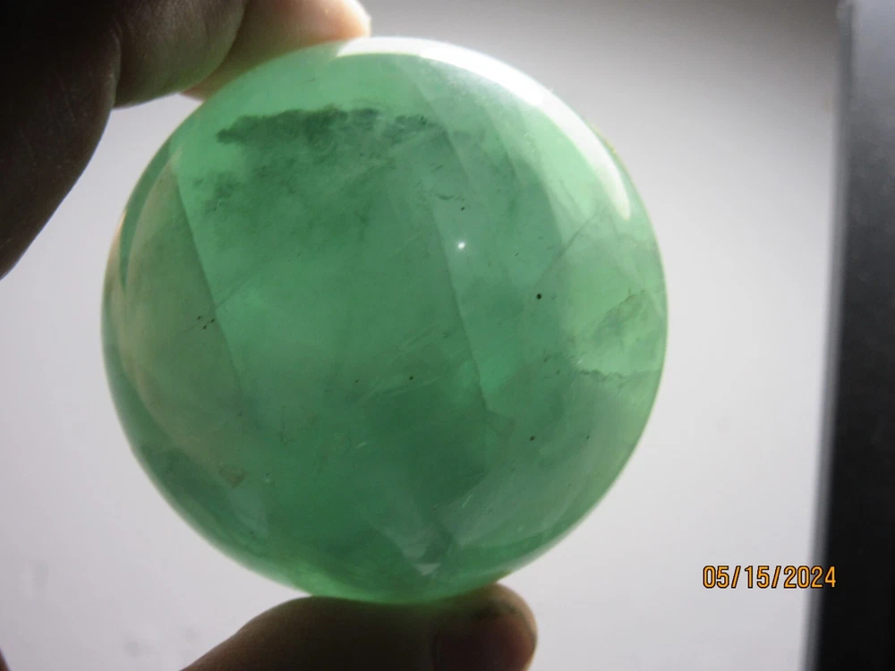 This AAA 2 1/4" Natural Fluorite Quartz 56mm Sphere Collectible is about 56.76mm or 2.234 diameter inches and weighs about 305.7 grams, 10.783 ounces, or 1,528 carats. I acquired this fluorite sphere for my collection over 30 years ago. It is still like new being on display. I do combined shipping.