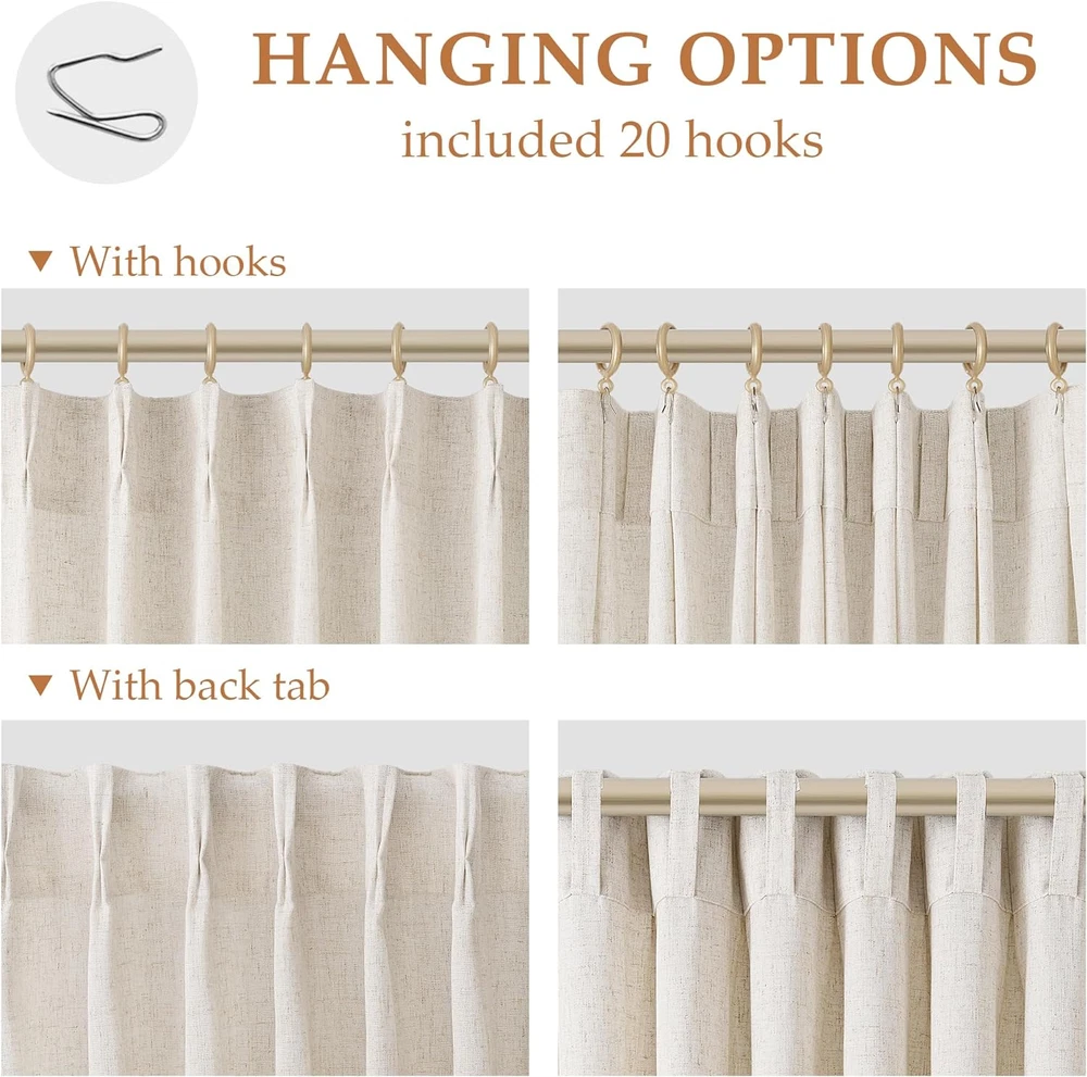 Store New Arrivals Add to Favorite View Feedback Contact Natural Pinch Pleated Linen Curtains 84 Inch Length 2 Panels for Living Room Bedroom Cream Semi Sheer Window Curtain Boho Neutral Back Tab Pinch Pleat Drape with Hooks 84 Inches Long Description Item model number AS18YMHZMS4084 Style Casual, Classic, Farmhouse, Boho, Cottage, Country, Vintage, Retro, Rustic, Shabby Chic, Traditional Weave Type Plain Number of Items 2 Pattern Linen Textured Country of Origin China Package Weight 1.36 Kilograms Theme Fashion, Romantic, Art Opacity Light-Filtering, Semi-Sheer Unit Count 2.0 Count Room Type Laundry Room, Bedroom, Living Room, Cottage, Home Office, Playroom, Nursery, Closet, Dining Room Product Dimensions 84"L x 40"W Material Natural Flax Linen Blend Top Style Back Tab, Pinch Pleat Model Name 2 Seasons All Season Included Components 2 Panels Closure Type Back tab Curtain Form Drapes Water Resistance Level Not Water Resistant Item Weight 2.99 pounds Special Feature Privacy, Semi-sheer, Lightweight, Light-filtering, Washable Hanging Method Back Tab Color Natural Linen Recommended Uses For Product Indoor Fabric Type Natural Flax Linen Blend Product Care Instructions Wash in cold water, tumble dry on low, iron on the lowest setting if needed Size 40"W x 84"L (Pack of 2) Pinch Pleat Design: Pinch pleated curtains use more fabric than regular curtains, creating a luxury curtain with elegant folds. Each panel has 7 pinch pleats, which bring a touch of sophistication. Hanging Aersas pinch pleated linen curtains flow in harmony throughout your home, helping you to create nurturing spaces that feel soothing and calm Upgraded Linen Fabric: Our natural linen curtains are crafted from upgraded natural linen and imported polyester blended fabric, which possesses more flax linen fibers than other normal linen curtains. Richer linen texture brings a delicate look and a natural cozy feeling. The poly-linen combination is a more cost-effective option, with greater durability and wrinkle resistance Light Filtering and Privacy: These pinch pleated linen curtains feature an open weave that filters glare and harsh light, and upgraded thicker linen fabric (180GSM) provides a degree of privacy. While allowing natural light in, the semi sheer drapery obscures the view from outside, ensuring that you can enjoy your space without sacrificing your privacy Versatile Hanging Options: There are 3 hanging methods to choose from to meet your different home decorating needs. Method 1: Hanging with our hooks on poles or track to easy slide and creat a modern pleated effect. Method 2: Using back tab to hide the rod, easy to hang and showcase an elegant pleated look. Method 3: Using clip rings for easy, slide open and closed.(clip rings are not included). Install according to your preference Ready made and easy care: 2 panels per package, each panel measures 40 inches wide and 84 inches long with 20 hooks. Simply wash in cold water, tumble dry on low, and iron on the lowest setting if needed. Product Description Aersas Pinch Pleated Linen Curtains Bring a Timeless Look to Your Home The video showcases the product in use. The video guides you through product setup. The video compares multiple products. The video shows the product being unpacked. ABOUT US We offer the best prices around on high quality products. Our E-store includes media such as books, movies, music and games while offering electronics, toys, sporting apparel, clothing, tools, general home, garden items and more. SHIPPING We are always working hard to ensure your package arrives as soon as possible. Please understand that some factors like weather, high postal traffic, and the performance of shipping companies are outside of our control. We offer free shipping to the lower 48 states and ship within 2 business days of payment, usually sooner. We do not accept P.O. Boxes. Please provide a physical address. For shipping outside of the continental USA, we only use eBay's Global Shipping Program.The item is shipped to KY and then sent to the rest of the world. International customers are responsible for all duties and taxes. Continue to check out in order to calculate costs for shipping the item to your country. Messages regarding eBay's Global Shipping Program MUST be directed at eBay EXCLUSIVELY. RETURNS We offer a 30-Day Return Policy on items which you are not completely satisfied with. You have the option for a full-refund or an exchange of the item. No returns are available on items shipped outside of the USA. PAYMENT We accept PayPal. CONTACT US This page content is yet to come Please ad us to your favorite seller and visit again later Thank You CUSTOMER SATISFACTION We try our very best to make sure every customer is completely satisfied. If there's a problem, message us! We're happy to help. WE ACCEPT Copyright © 2021 AutoDS. | All Rights Reserved