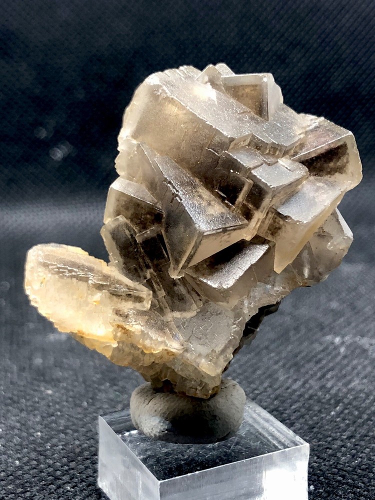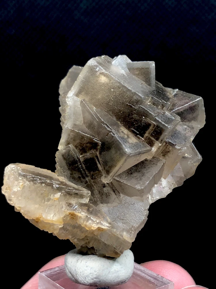 Weight:43g Fluorite is a widely admired mineral known for its diverse range of colors, including purple, blue, green, yellow, colorless, and even multi-colored variations. It is composed of calcium fluoride (CaF₂) and often forms in hydrothermal veins, particularly in association with minerals such as quartz, calcite, and barite. Fluorite is valued not only for its aesthetic appeal but also for its practical applications in industries such as metallurgy, ceramics, and optics. Some notable characteristics and facts about fluorite: - **Fluorescence**: Many fluorite specimens exhibit fluorescence under ultraviolet light, which is where the mineral gets its name. - **Hardness**: Fluorite has a Mohs hardness of 4, making it relatively soft compared to other minerals. - **Crystal structure**: It typically forms cubic crystals but can also exhibit octahedral and other forms. - **Cleavage**: Fluorite has perfect octahedral cleavage, meaning it breaks along planes to form flat surfaces. Collectors often seek out fluorite specimens from well-known locations such as China, Mexico, and Illinois (USA), each offering unique colors and formations.