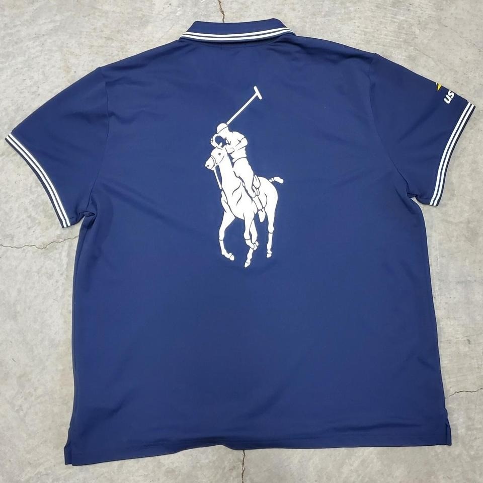 Navy Polo Ralph Lauren US Open Tennis Big Pony On Front An Back Shirt Like New Condition Size XL Pit to Pit 22" Shoulder to Hem 28" #Polo #RalphLauren #USOpen #Tennis #BigPony