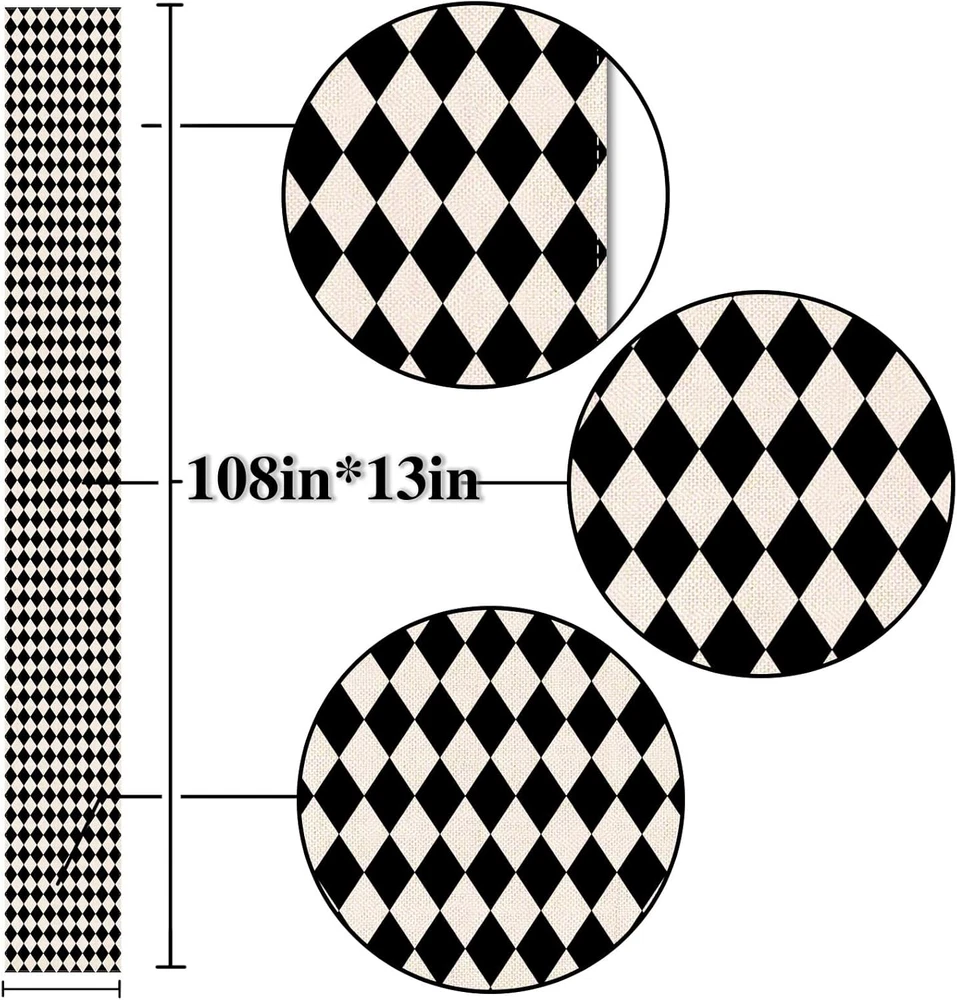 Natural Material: Linen (burlap like) fabric. Durable and easy to clean. Size:13×108inches. Suitable for a table that can seat 6 to 8 people. Hand washable. Colorfast and non-shrink. Lay flat to dry. Roll it up to store. Great for tea themed party decor. Linen material and bright color can create a rustic, natural and seasonal feel to your table decor. Black and white table runner for tea party