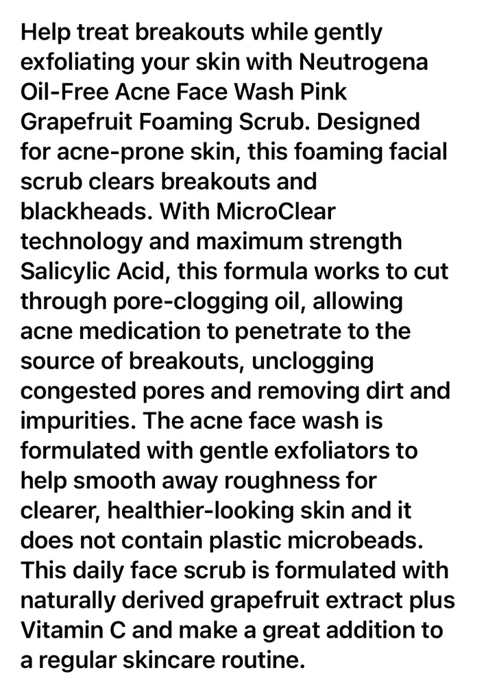 NEW-Never Opened (Lot of 3) Includes: Neutrogena Oil-Free Acne Wash Pink Grapefruit Foaming Scrub (4.2 fl. oz. each) Please see pics for more details đ