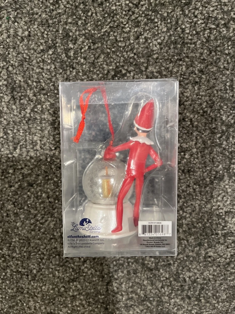 Add some holiday cheer to your collection with this charming Dunkin Donuts Elf On The Shelf Ornament Snow Globe Ice Coffee. The ornament comes in a globe shape and features a cute elf figure sitting on top of a snow-covered donut. The globe is filled with faux snow and a miniature Dunkin cup with ice coffee. This ornament is the perfect addition to your Christmas decor and will surely make you smile every time you look at it. Hang it on your tree or display it on your mantle to add a touch of whimsy to your home. Get yours now and enjoy a sip of happiness!
