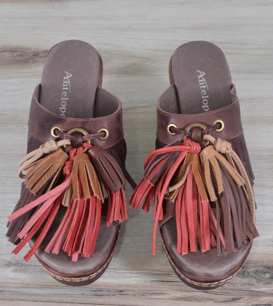 Brand: Antelope Style: Lada Sandals Color: Brown Soft Leather Upper Fringed Multicolor Tassels Comfort Toe Post Latex Cushioned Footbed Coated in Leather 3.5" Block Heel Non-Slip Soles Condition: New without Box New Antelope LADA Leather Fringe Tassel Toe Post Mules Shoes Size 38 7 BROWN New Antelope LADA Leather Fringe Tassel Toe Post Mules Shoes Size 38 7 BROWN Description Always Authentic, Free Domestic Shipping, NO Stock Photos, No Hassle Returns and 26,000+ Happy Customers! Brand: Antelope Style: Lada Sandals Color: Brown Soft Leather Upper Fringed Multicolor Tassels Comfort Toe Post Latex Cushioned Footbed Coated in Leather 3.5" Block Heel Non-Slip Soles Condition: New without Box I AM IN NO WAY AFFILIATED WITH ANTELOPE SHOES, ITS COMPANIES OR ANY OF ITS AFFILIATES OR SUBSIDIARIES, JUST AN AVID SHOPPER AND A HUGE FAN Click images to enlarge About Us Thank you for Visiting Annie's Unique Accessories! Please Review Our 24,000+ Fabulous Feedback and Know that We Personally Shop, List and Photograph Each Item We Sell. We Guarantee 100% Authenticity Because We Shop and Hand Pick EVERY Item we Sell from the Retail Brand Store. I'm Always Happy to Provide a Copy of our Retail Store Receipt. Just Leave me Note at Checkout. Also, Please Remember that we Have a 30-Day, No Hassle Return Policy as we Know Shopping Online Can be Difficult. Happy Shopping! Annie’s Unique Accessories Get images that make Supersized seem small. Showcase your items with Auctiva's Listing Templates! THE simple solution for eBay sellers.