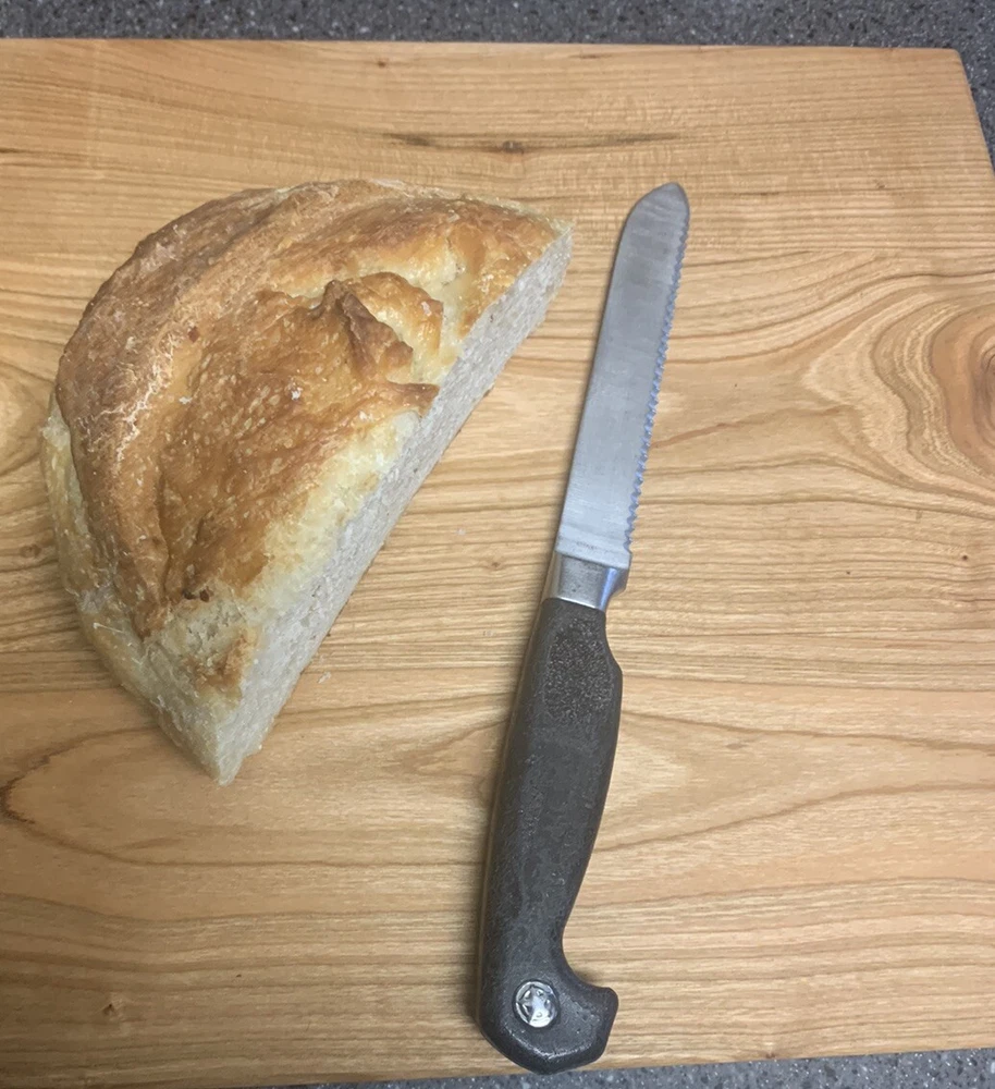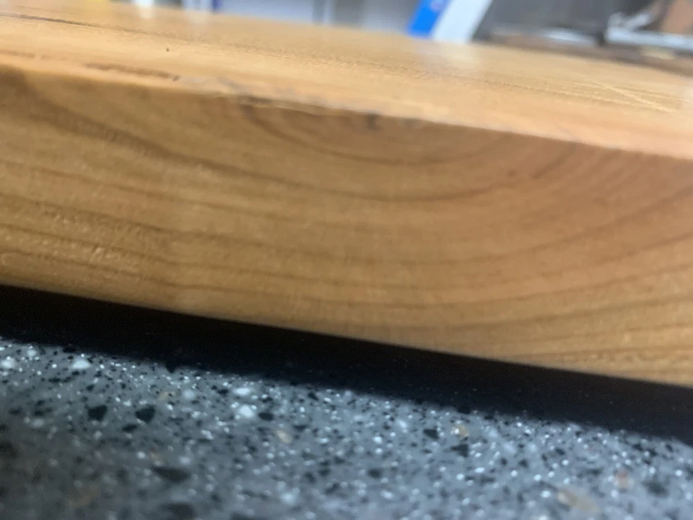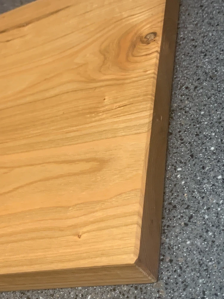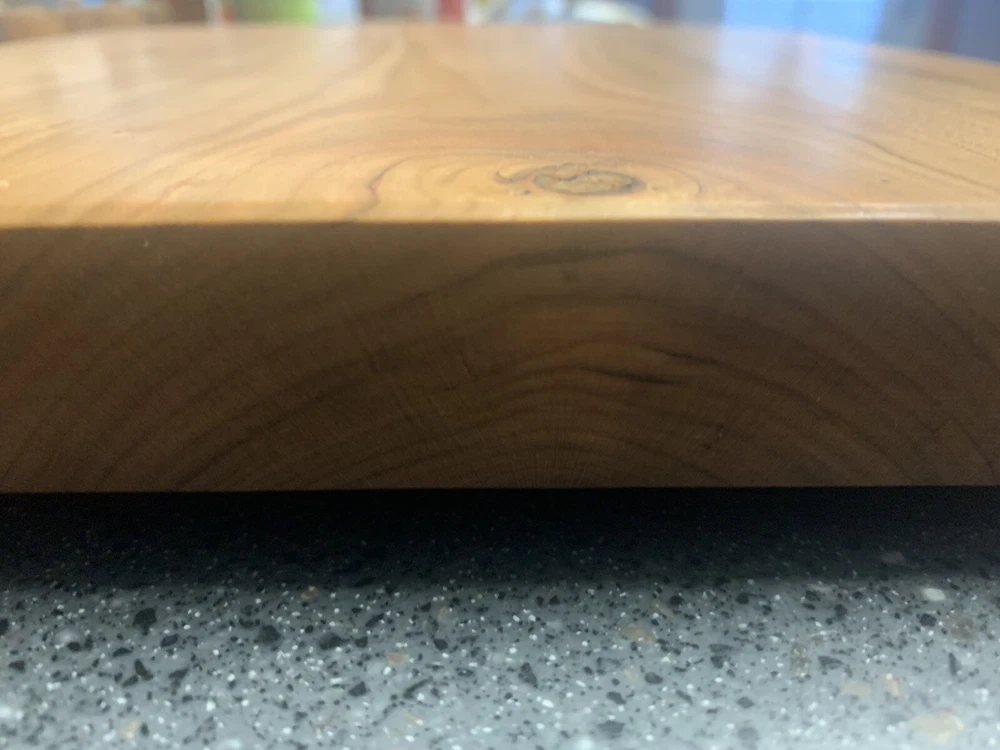 New Cherry Bread Board, 12 X 11, hard wood, one inch thick, weighs 3 and a half pounds. Feet are included for non skid on counter top but optional.
