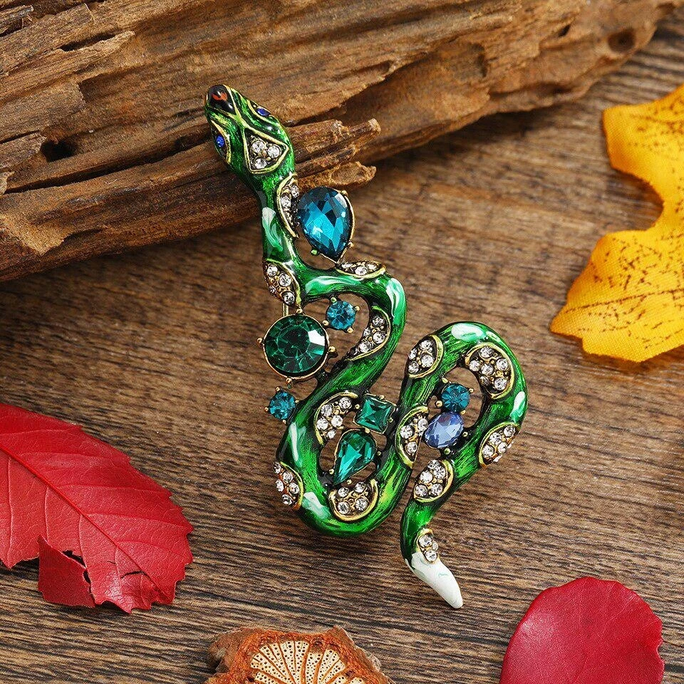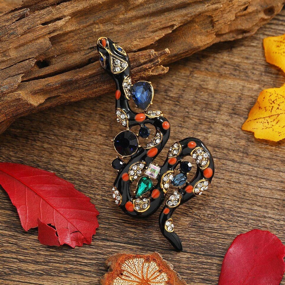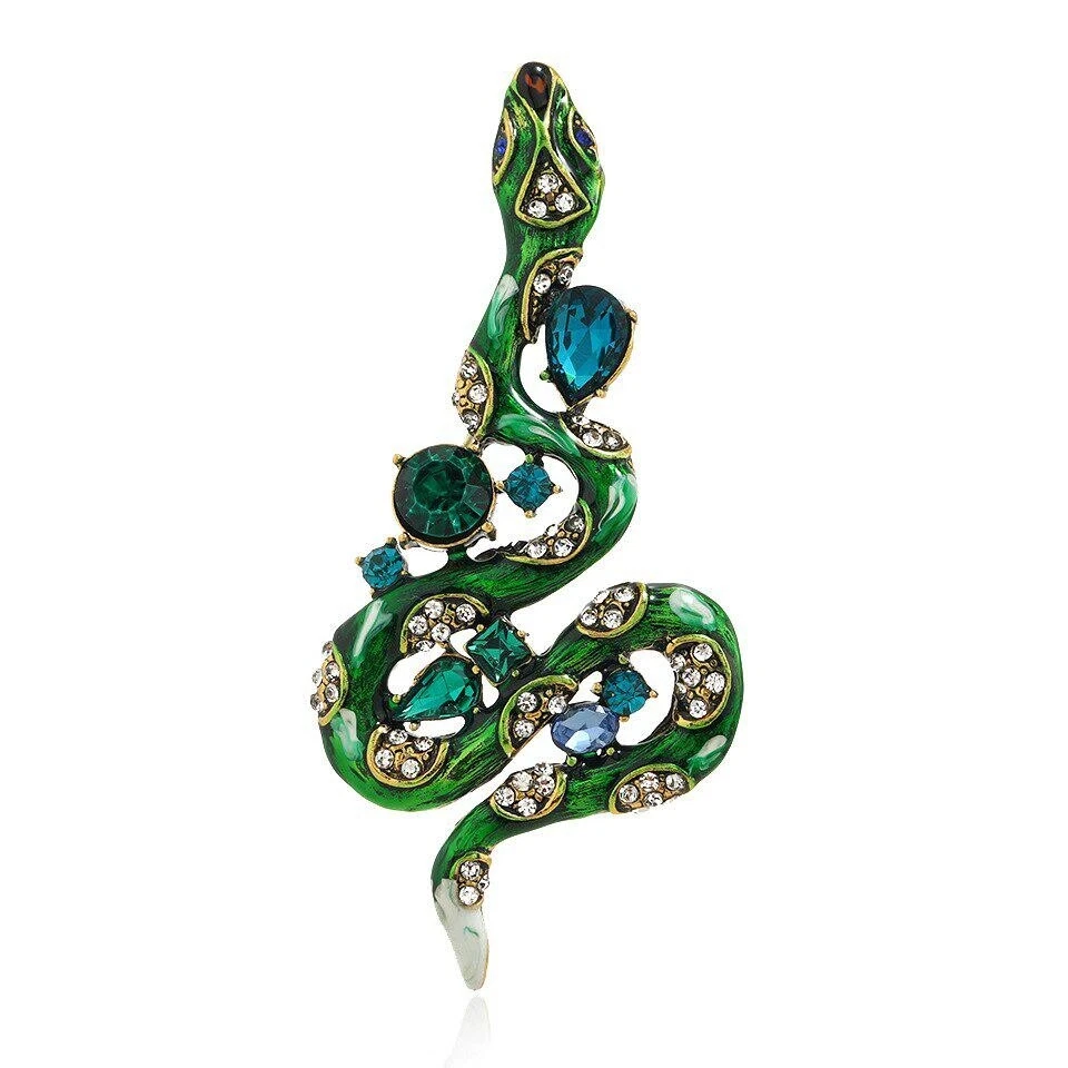 New Creative Classic Vintage Snake Enamel Crystal Badges Women Men Accessories