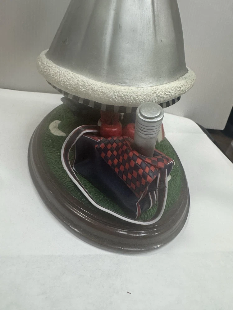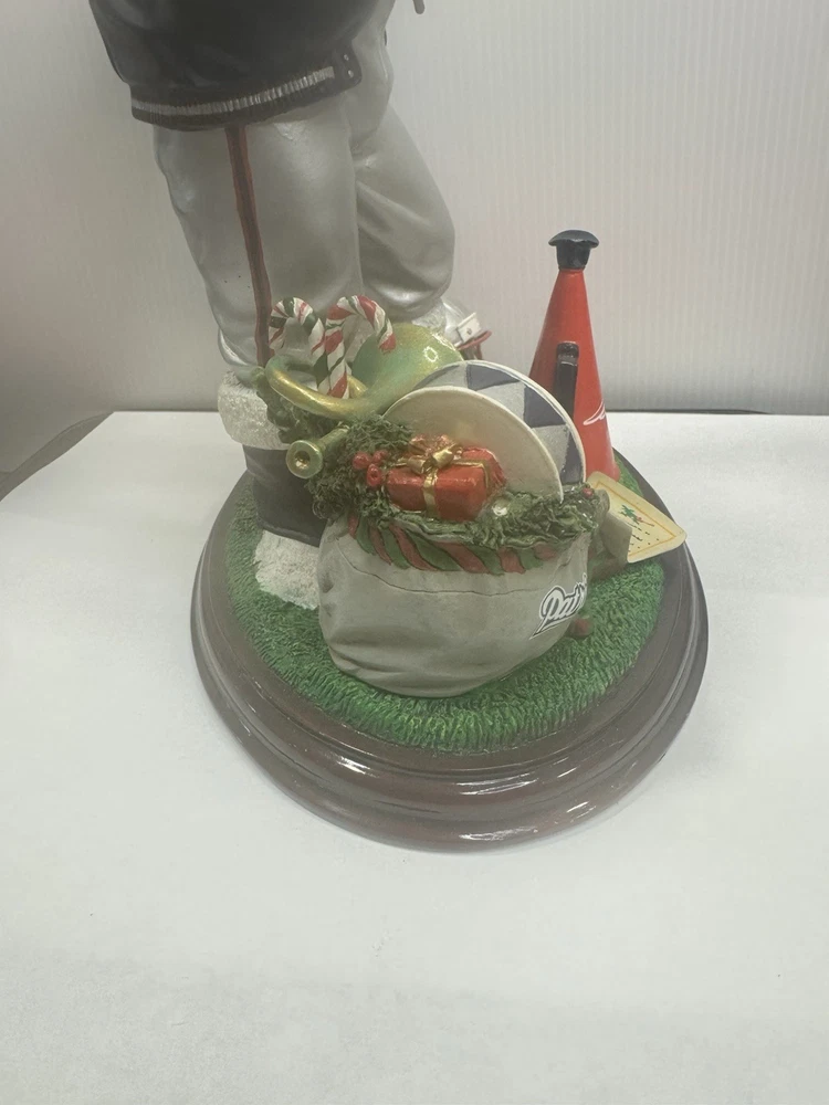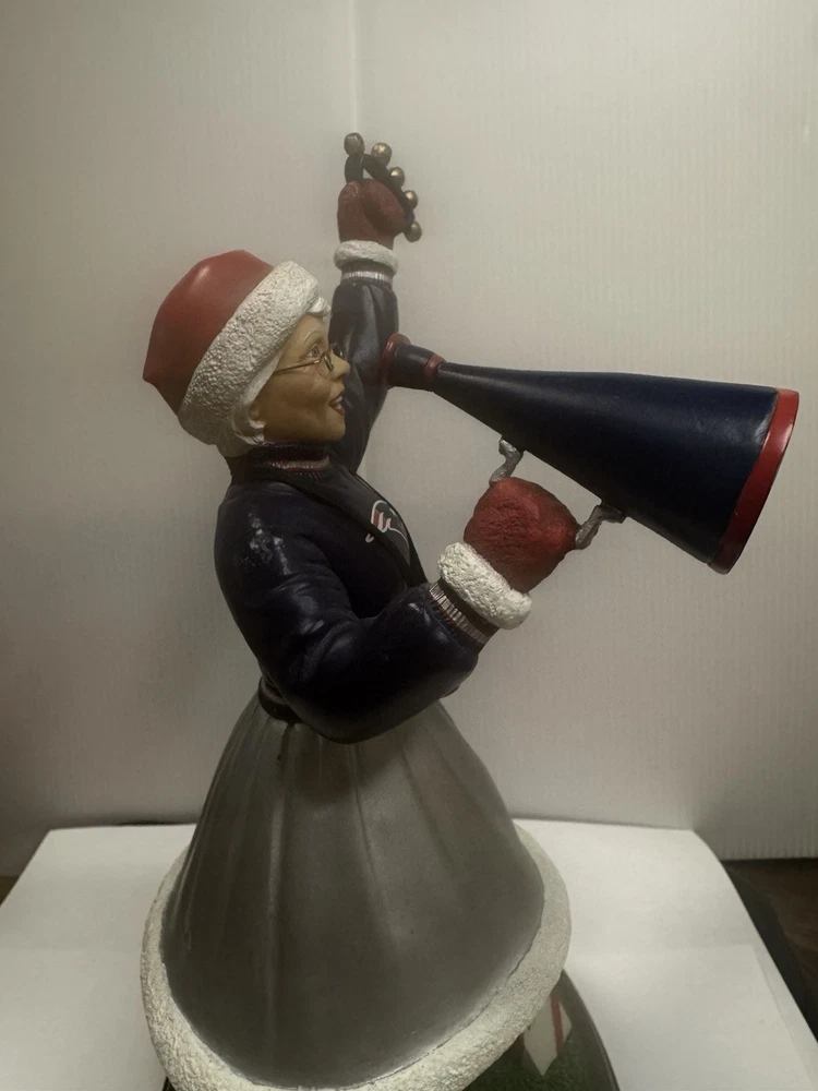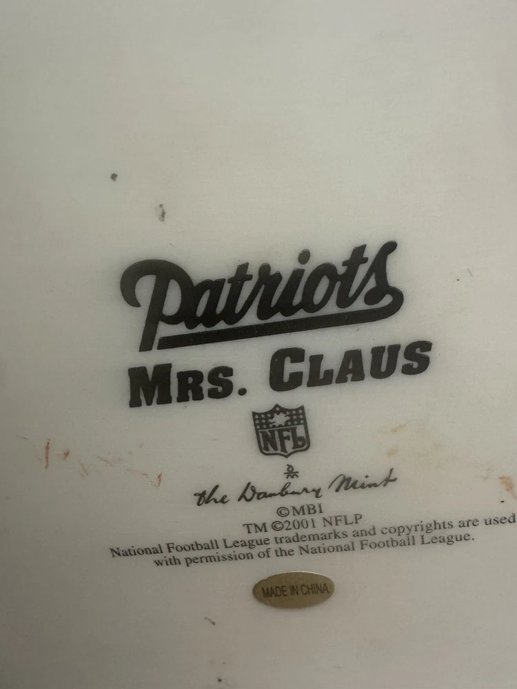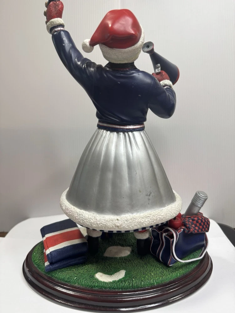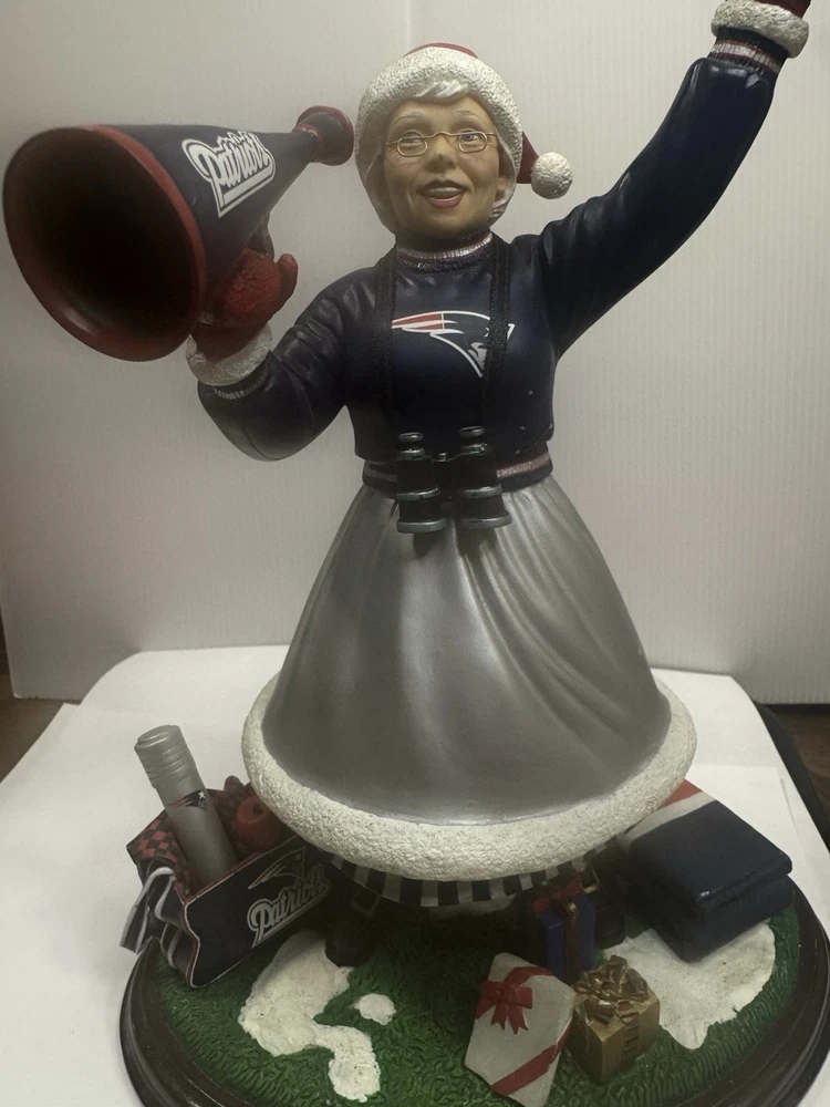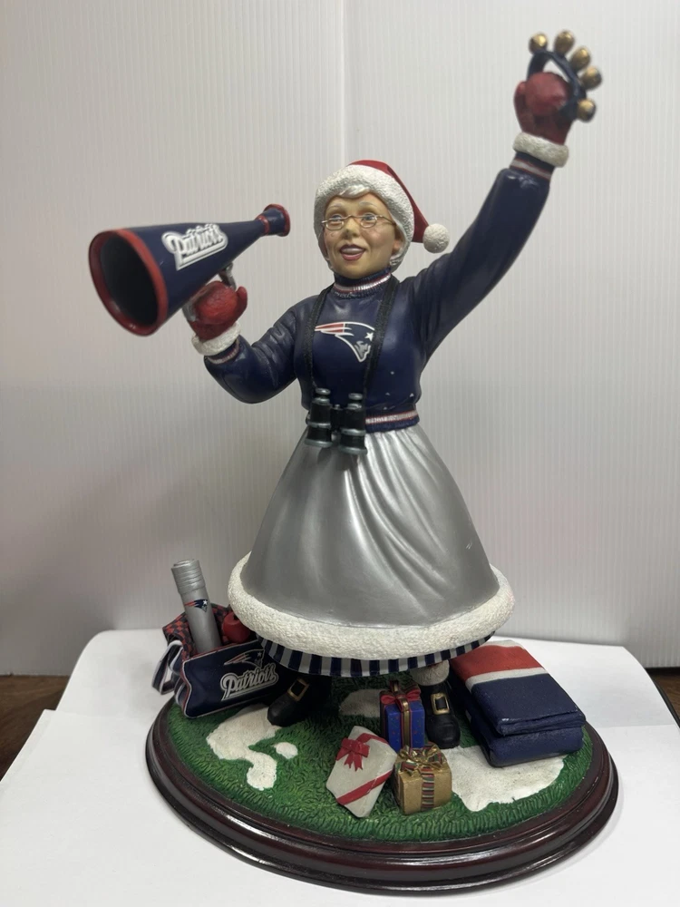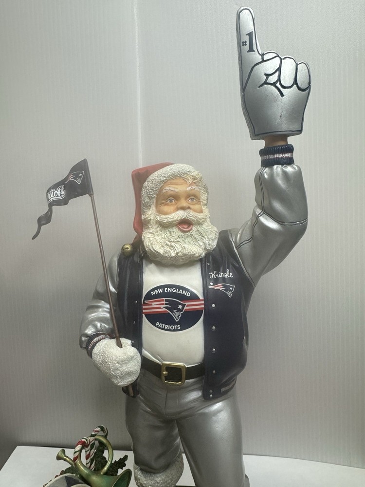 Capture the holiday spirit with this unique New England Patriots Santa Claus and Mrs. Claus collectible from Danbury Mint, commemorating the 2000/2001 NFL season. Immerse yourself in the festive cheer of the Patriots' fandom with this intricately designed piece that's a must-have for any dedicated football enthusiast or collector. Adorned with the iconic colors and logo of the New England Patriots, this set is a tribute to one of the NFL's most successful teams. Perfect for display during the holidays or as part of your sports memorabilia collection, it's a charming representation of team spirit that celebrates the legacy of the New England Patriots. Lil bear on santa Claus with arm and leg broken
