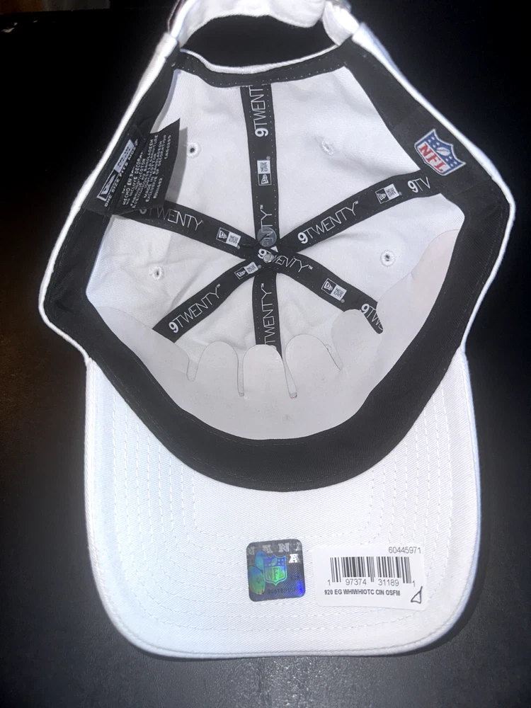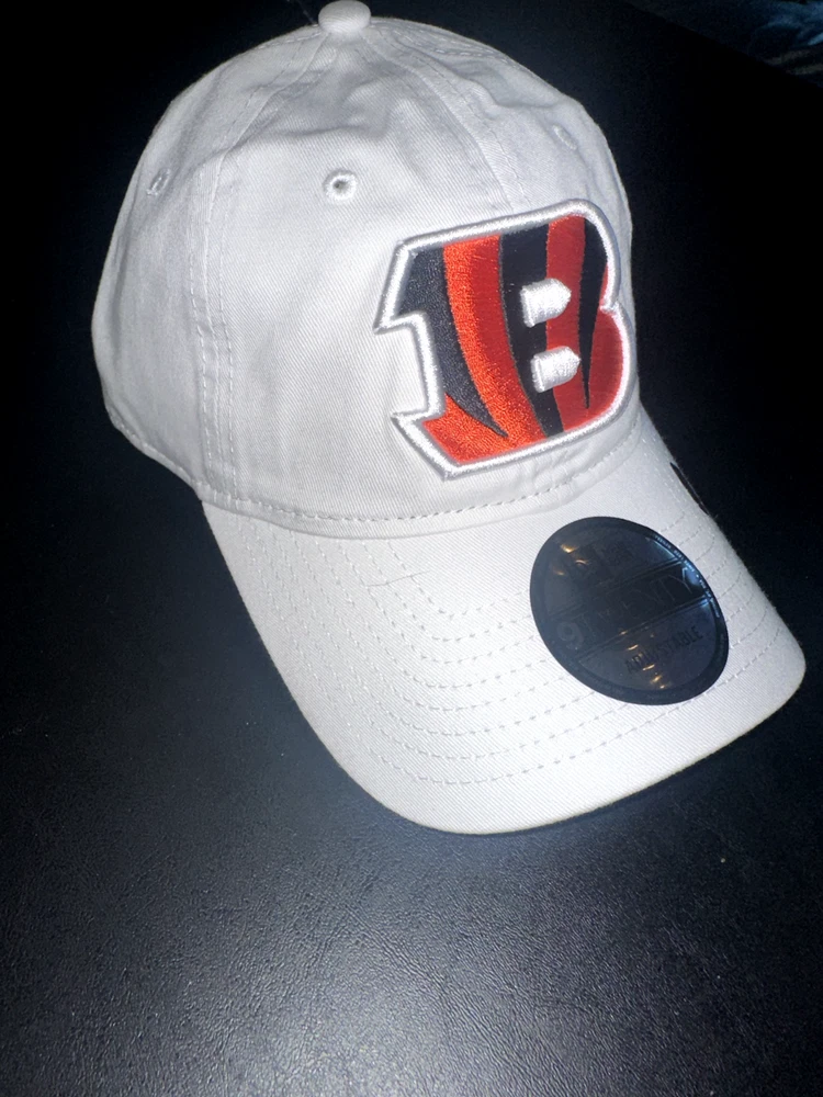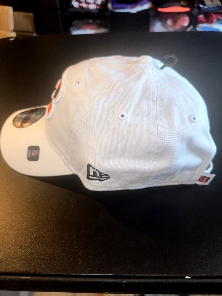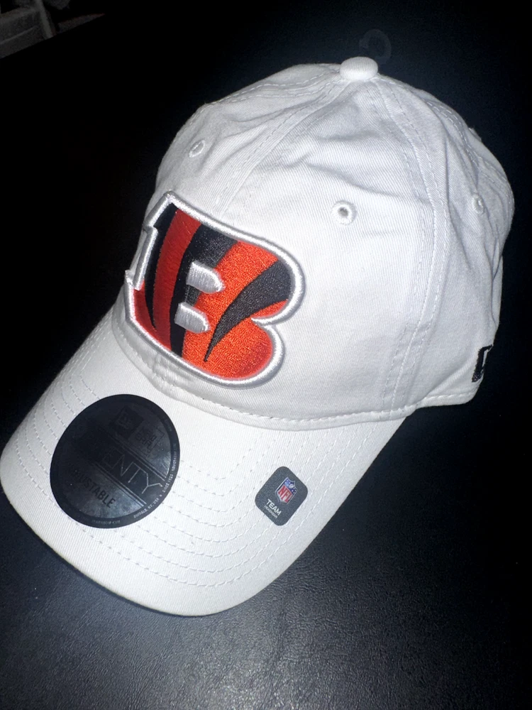 Show off your love for the Cincinnati Bengals with this officially licensed New Era 59Fifty NFL Cap. The white cap features the team's logo and colors, making it the perfect addition to any fan's collection. It's made for men and has an adjustable size, so it fits anyone comfortably. Represent your favorite team during regular season games with this stylish sideline team cap. Whether you're watching the game at home or at the stadium, this hat is a must-have for any true fan. Get your hands on this high-quality New Era cap today!