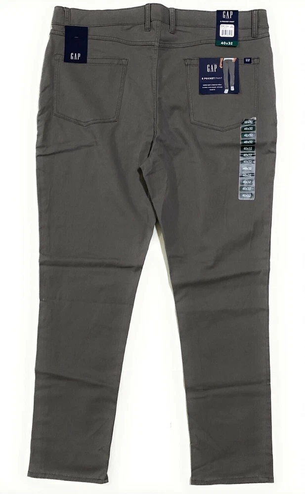 Gap Super Soft Stretch Twill Slim Fit Pants New with tags MSRP: 79.95 Variety color & sizes Comfortable cotton-blend fabric defines this stretch pant, made from twill and featuring front slanted pockets with single coin pocket, back patch pockets, zip fly with button closure, and belt loops. Super soft stretch twill 5 Pocket Pant Zip & button closure Slim Fit Chambray Interior Waistband Double Belt Loops on the Back 98% Cotton, 2% Spandex Machine Wash Comes from a pet-free and smoke-free environment If you have any questions, please ask before bidding We only ship to the U.S. Please check our store for other brand name goods!