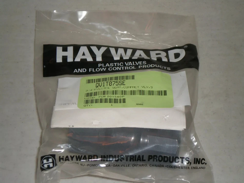 New! - Hayward QV1T075SE 3/4" PVC Ball Valve TFE Seat Schedule 80 Fast Free Standard Shipping! New - In original package - Package may show signs of handling. Your satisfaction is guaranteed! If you have any problems, return this item to me in the same condition that it was sent to you, and I will refund the purchase price (less shipping cost) for 30 days. Location: Shelf B19 - Bin 132 OVERNIGHT SHIPPING Overnight orders need to be purchased and arranged with the seller Prior to 2:30pm Central Time. We can ship UPS Next Day Air in many cases and can also ship using your UPS account if desired. Contact us to arrange specific shipping details. DOMESTIC SHIPPING Most items will ship within one business day of the payment clearing. The item is guaranteed to ship within three business days. INTERNATIONAL SHIPPING International buyers are responsible for all customs charges. Please provide a contact name and phone number that can be used on the customs form. It is against company policy to mark purchased items as "gift" or to adjust the customs value lower than the actual cost. PAYMENTS Payment must be received within 7 business days unless other arrangements are made beforehand. INDEMNITY: Buyer shall, at no expense to the Seller, indemnify, defend and hold the Seller harmless against any and all losses, damages and expense (including punitive damages, multiple damages, attorney fees and other costs of defending any action) Seller may incur as a result of any claim made against the seller by any person, including without limitation, Buyer, it's successors, assigns, representatives, agents, employees, insurers, and customers, actually or allegedly arising out of the regarding the transportation, installation or use of the equipment sold hereunder by Seller or out of any products manufactured or sold by Buyer, including, without limitation, any claim which in whole or in part actually or allegedly arises out of (a) Seller's negligent or other wrongful act or omission, (b) danger or default in any equipment sold by Seller to Buyer, (c) infringement by Seller of any patent, copyright, or trade secret relating to any equipment sold by Seller to Buyer.