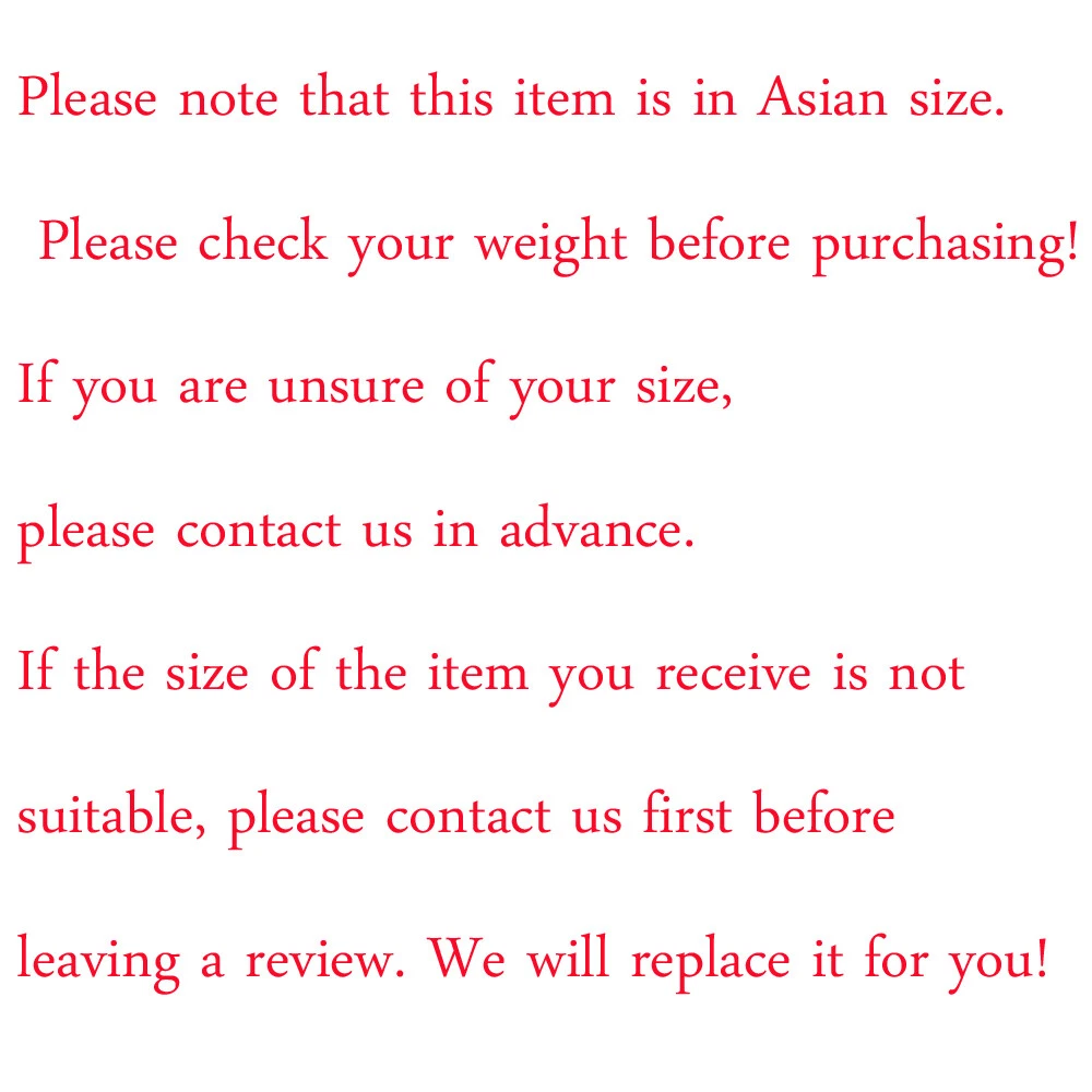 Store category Sign Up Now ! You may also like Product Description Hi! welcome to our shop! Quality first, best service. Customers are our friends. Stylish Design, 100% Brand New, High Quality! notes: 1. Due to the change of screen color setting, the actual fabric color may be slightly different from the online color. 2. The label size is Asian size, the parameters of each size are measured by placing the product on a flat table to measure its outer size. Please measure yourself before ordering, if you are not sure, please contact us. feature: 100% brand new and top quality Reminder: Due to different measurement methods, any 1-3CM error is within a reasonable range Note: Product details are slightly different for different production batches. Please refer to the actual Size Chart: 1inch=2.54cm Payment Delivery details Terms of sales About us Contact us Payment Accept all payment. We send all the items are based on your paypal address. Therefore, please make sure your paypal address is valid. Delivery details We will arrange shipping for you within 10 days after payment cleared except the holidays Hi ,Great buyer : I will send it out as soon as possible. The company has many stores. Send in order of order. Processing time: 2-4 days. The system automatically uploads tracking numbers. Transportation time: 8-12 working days.(Europe and North America and Australia) Transportation time in the Middle East region and Northern Europe : 10-15 days. Asian transportation time: 5-10 days African transportation time: 30-40 days. Transportation time in South America: 30-40 days Please understand. Wishing you a pleasant shopping experience. . Terms of sales It's highly appreciated you leave us positive feedback and 5 star rating comments if you are satisfied with our service ! Your comment is very important in our business success. About us In China we have our own factory, we support a large number of wholesale and customized, price concessions. And we can achieve long-term cooperation. Provide products for your store. Contact us Our team is with the collection of research, production, distribution and service, Expect in the goods quality be still on the price, after-sales service, we all will keep in the middle of go together of advantage position, real attain the ream customer satisfaction. Feedback