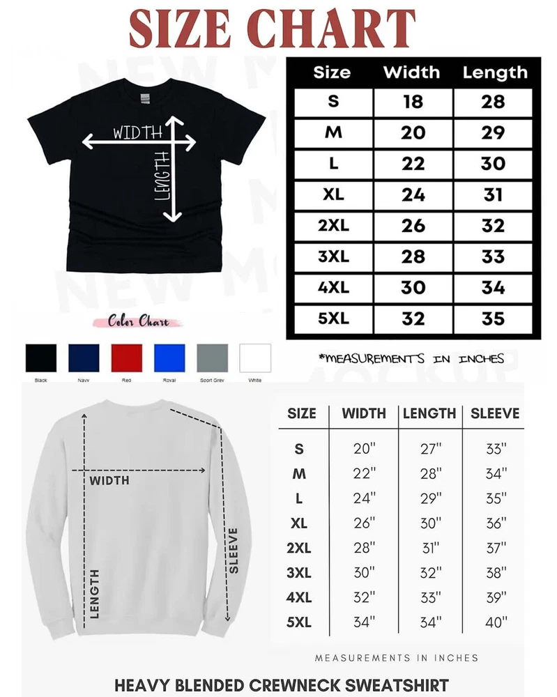 π Welcome to my new store! π We are a small family business dedicated to crafting custom designs on high-quality t-shirts, sweatshirts, long sleeves, tank tops, V-necks, youth and toddler shirts, babysuits. Our goal is to provide you with unique, stylish, and comfortable apparel that youβll love. π Select Options: Choose your size. βοΈ Personalize: Enter your color in the Personalization Box. π Add to Cart: Add items to your cart and repeat for multiple items. π³ Checkout: Proceed to checkout, verify your address, and select a shipping method. π© Contact Us: Message us with any special requests or questions. π¨ Color Disclaimer: Please note that due to varying screen settings and lighting conditions, the actual colors of the product may slightly differ from what you see on your screen. For matching colors, order the same style. π Shipping: Our processing time is 1-3 business days. Standard shipping takes 1-6 business days. Note that the "ship by" date is when your order leaves our store, not the delivery date. π§Ό Care Instructions: Turn the shirt inside out before washing. Wash in cold water. Hang to dry; do not use a dryer. π¬ Customer Service: Have questions? Contact us anytime! Weβre here to help and ensure you have a great shopping experience. π Return Policy: Due to the custom nature of our products, we do not accept returns or exchanges. If there is an issue with your order, please contact us immediately.