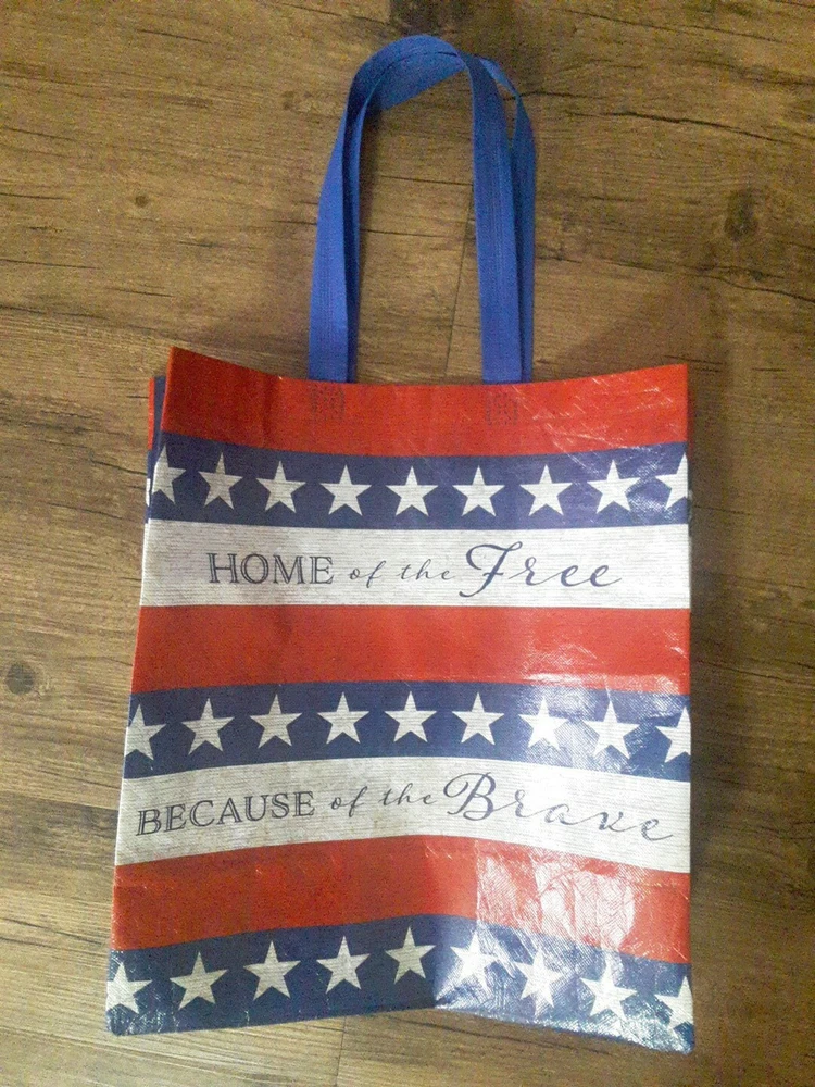 New Red White Blue Home Of Brave Reusable Shopping Gift Bag Recycled Material. Condition is New. Shipped with USPS Ground Advantage.