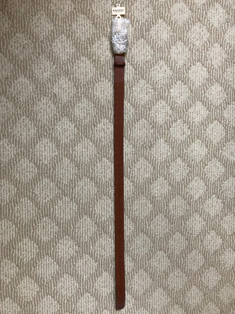 FOR SALE IS A BRAND NEW (WITH TAGS) SONOMA LIFE + STYLE WOMEN'S BELT. COLOR: COGNAC (BROWN) SIZE: MEDIUM 40" long without buckle OVERALL LENGTH: 1.75 inches wide and is about 43.5 inches long including buckle Here's the size chart from KOHL'S: Size Chart S 38" length M 40'' length L 42'' length XL 44" length SOLID DESIGN WITH BEAUTIFUL BUCKLE REGULAR PRICE: $30 ON TAG