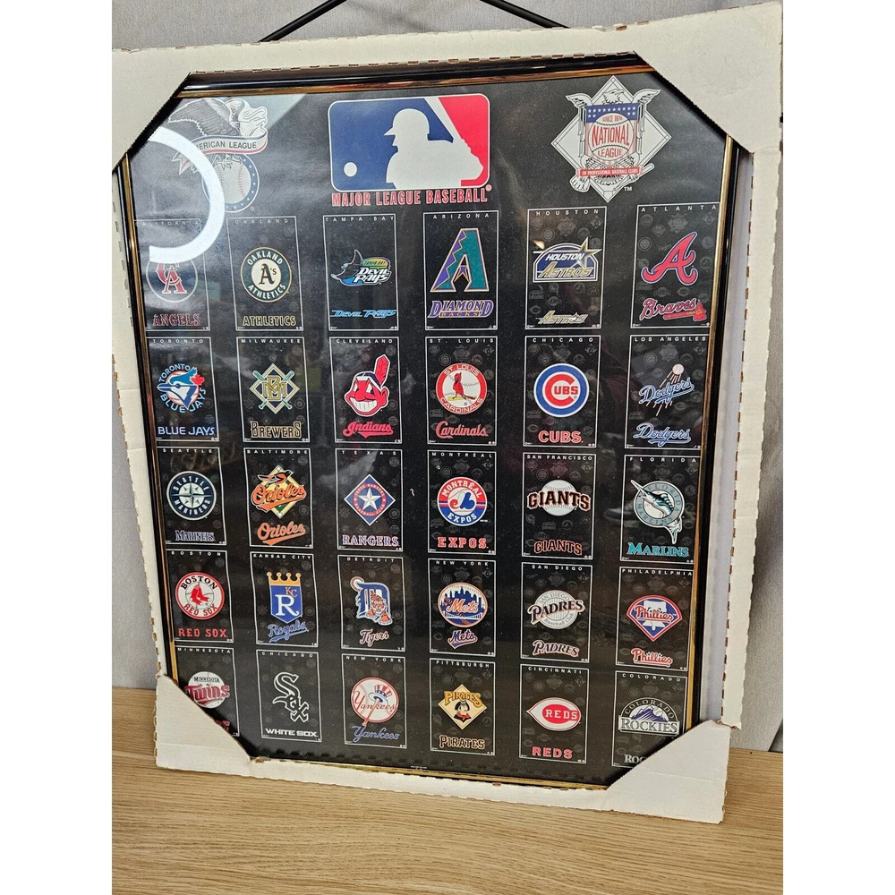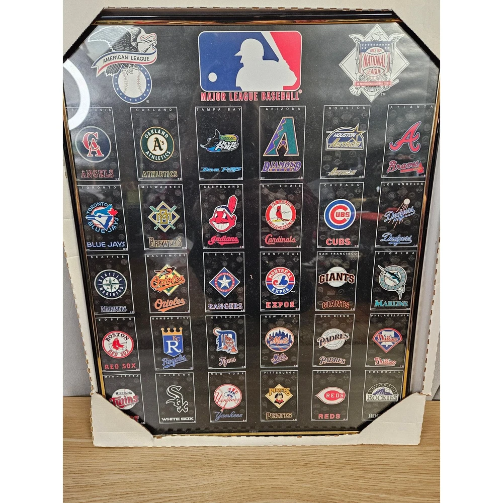New Vintage 90's MLB Framed Poster 16x20" Includes American League teams. Perfect for any basketball enthusiasts. Great addition to any man cave. This poster is in new condition and perfect for a great holiday gift!