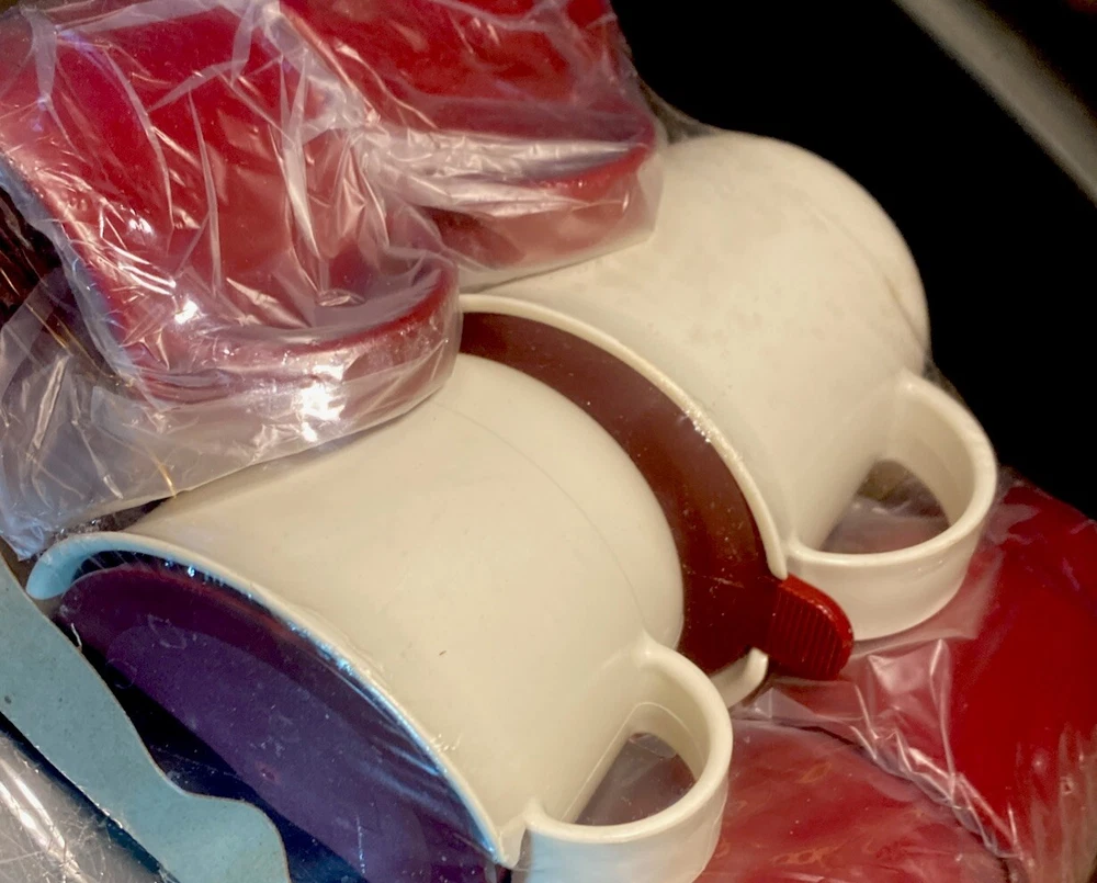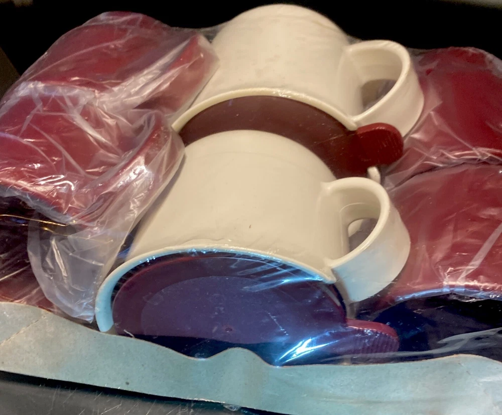 New USA Vintage Tupperware Coffee Serve Set 4 Mugs & 2 Condiment Caddy’s /factory sealed packaging. NOS Made in USA “Out of Production” Collectible Tupperware. Rare Color matching Set