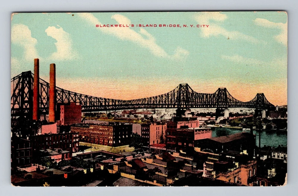 New York City NY, Blackwell's Island Bridge, Souvenir, Vintage Postcard