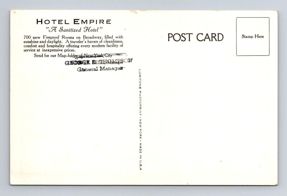 New York City NY, Hotel Empire, Antique, Vintage Postcard