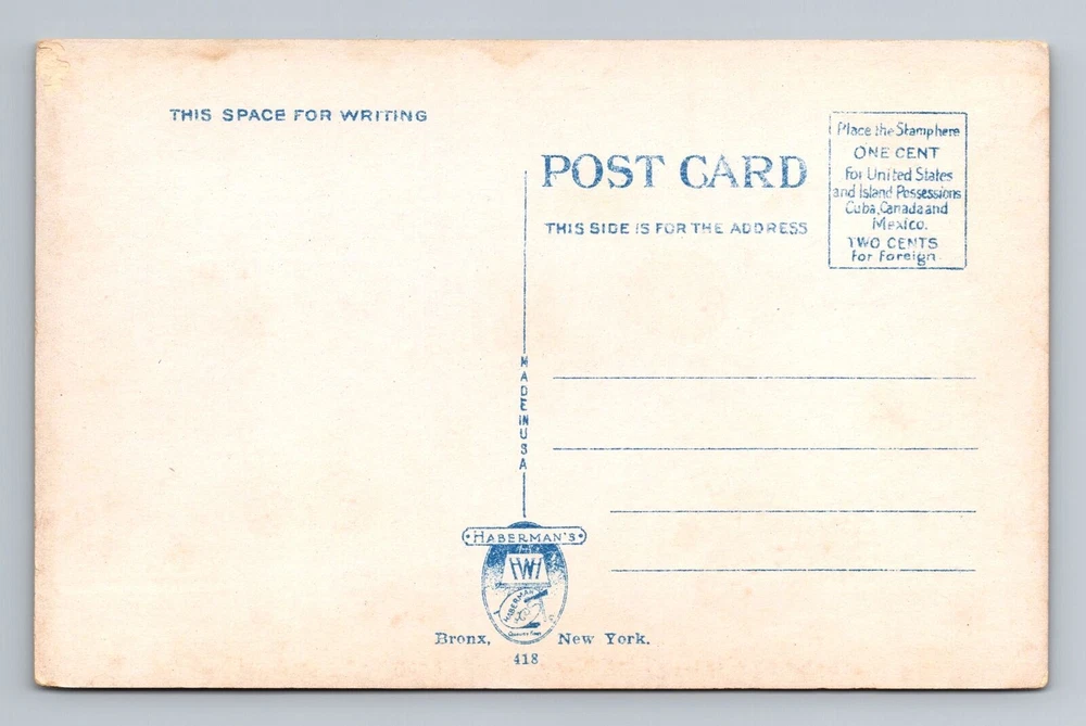 Greetings and Salutations! Welcome to The Vintage Postcard Company With Our Fully Stocked e B a y Store Postcard Size: Standard Vintage 3 1/2 by 5 1/2 (Unless Otherwise Noted in Title) USE THE EBAY PHOTO MAGNIFIER Examine photos carefully for condition and detail. Shipping & Handling USA : FREE USPS First Class Letter International : $3.00 USPS International First Class Letter Ø Postcards are mailed in protective plastic sleeves. Ø Placed inside a sturdy white 16pt cardstock photo mailer. Ø A DO NOT BEND sticker is applied or printed. Ø We aim to ship within 24-48 hours of payment, Monday through Friday. Ø Postcards with a value under $20 are mailed USPS First Class Letter. Ø Postcards with a value over $20 are mailed USPS Ground Advantage. In a bubble mailer and in a hard plastic top loader. Ø Please allow 7-10 Days for your postcard to arrive. 3-4 weeks Internationally We do our best to answer any questions or correct any problems should they arise within 24 Hours. Your Support Means the World to Us. Thank You for Choosing Our Small Business!