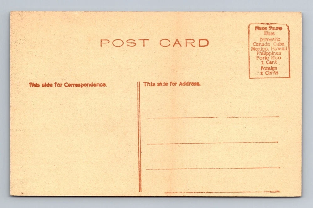 Greetings and Salutations! Welcome to The Vintage Postcard Company Postcard Size: Standard Vintage 3 1/2 by 5 1/2 (Unless Otherwise Noted in Title) USE THE EBAY PHOTO MAGNIFIER Examine photos carefully for condition and detail. Shipping & Handling USA: FREE USPS First Class Letter International : $1.49 USPS International First Class Please add $0.10 for each additional on same invoice . All Postcards are mailed in a protective plastic sleeve. Placed inside a sturdy white 16pt cardstock photo mailer. A DO NOT BEND sticker is applied. We aim to ship within 24 hours of payment, Monday through Friday. All Postcards are mailed USPS First Class Letter (no tracking.) Please allow 7-10 Days for your postcard to arrive. 3-4 weeks Internationally We do our best to answer any questions or correct any problems should they arise within 24 Hours. Your Support Means the World to Us. Thank You for Choosing Our Small Business!