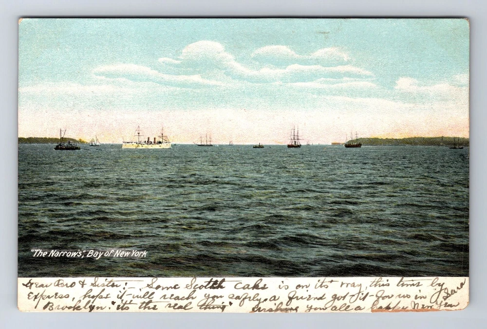 New York City NY, The Narrows, Bay Of New York, Vintage Souvenir Postcard