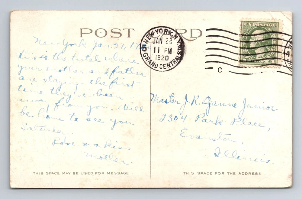 New York City NY, The Vanderbilt, Souvenir, Antique, Vintage c1920 Postcard