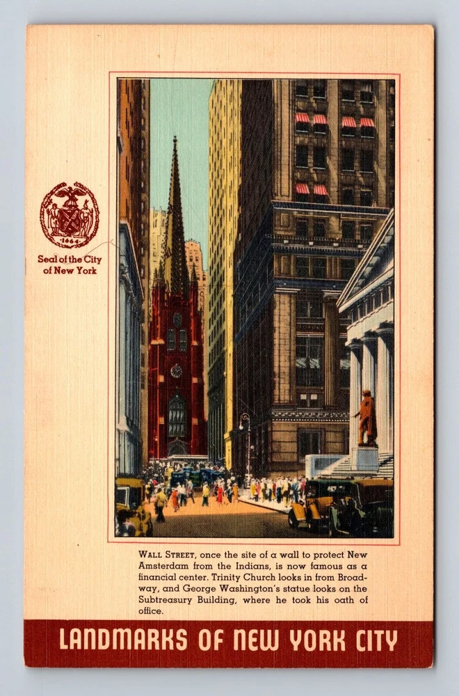 New York City NY, Wall Street, Souvenir, Antique, Vintage Postcard